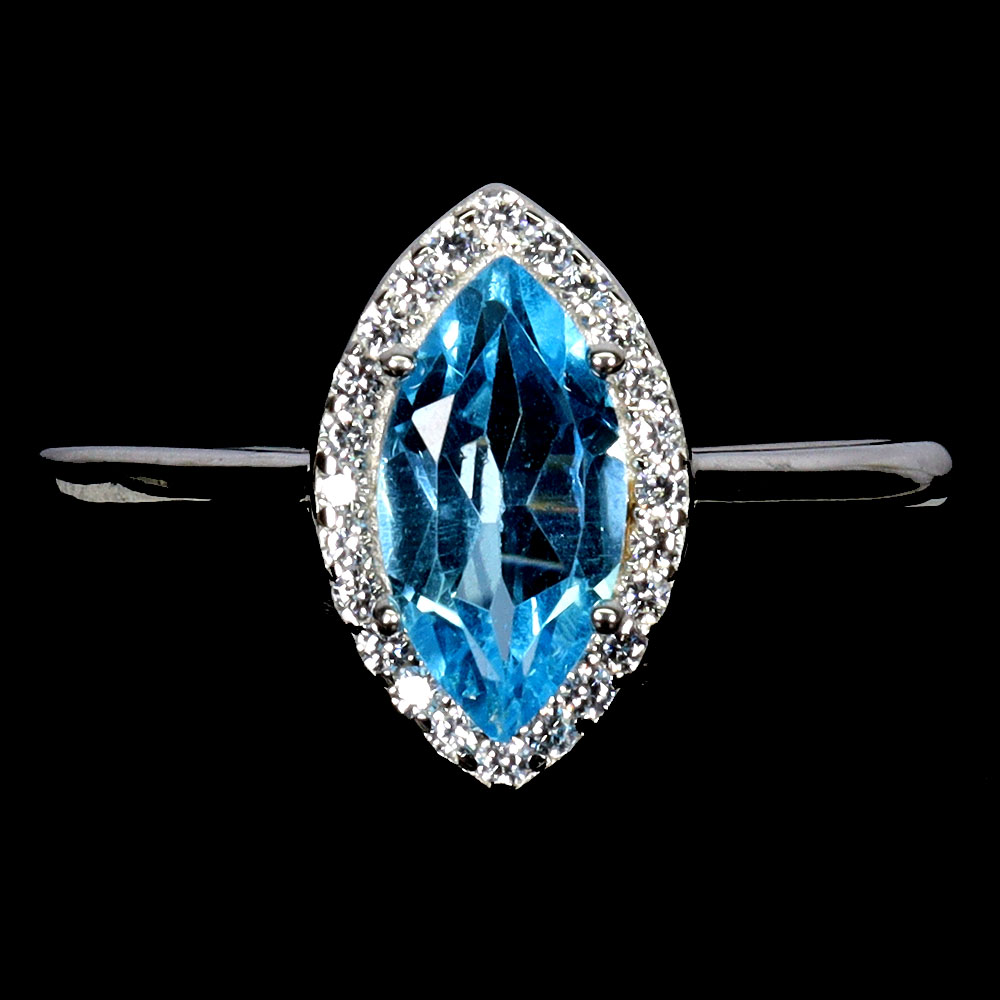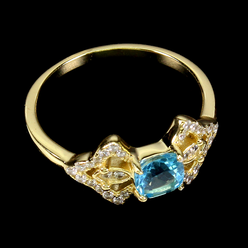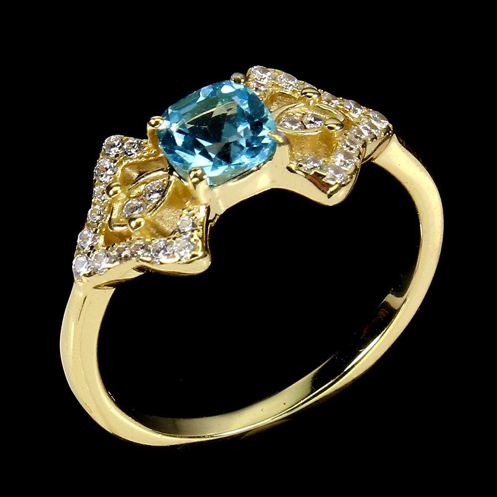 Irradiated Cushion Swiss Blue Topaz 5mm Simulated Cz 925 Sterling Silver Ring 9
