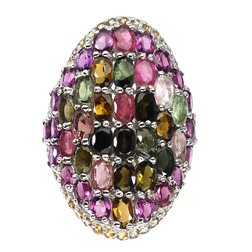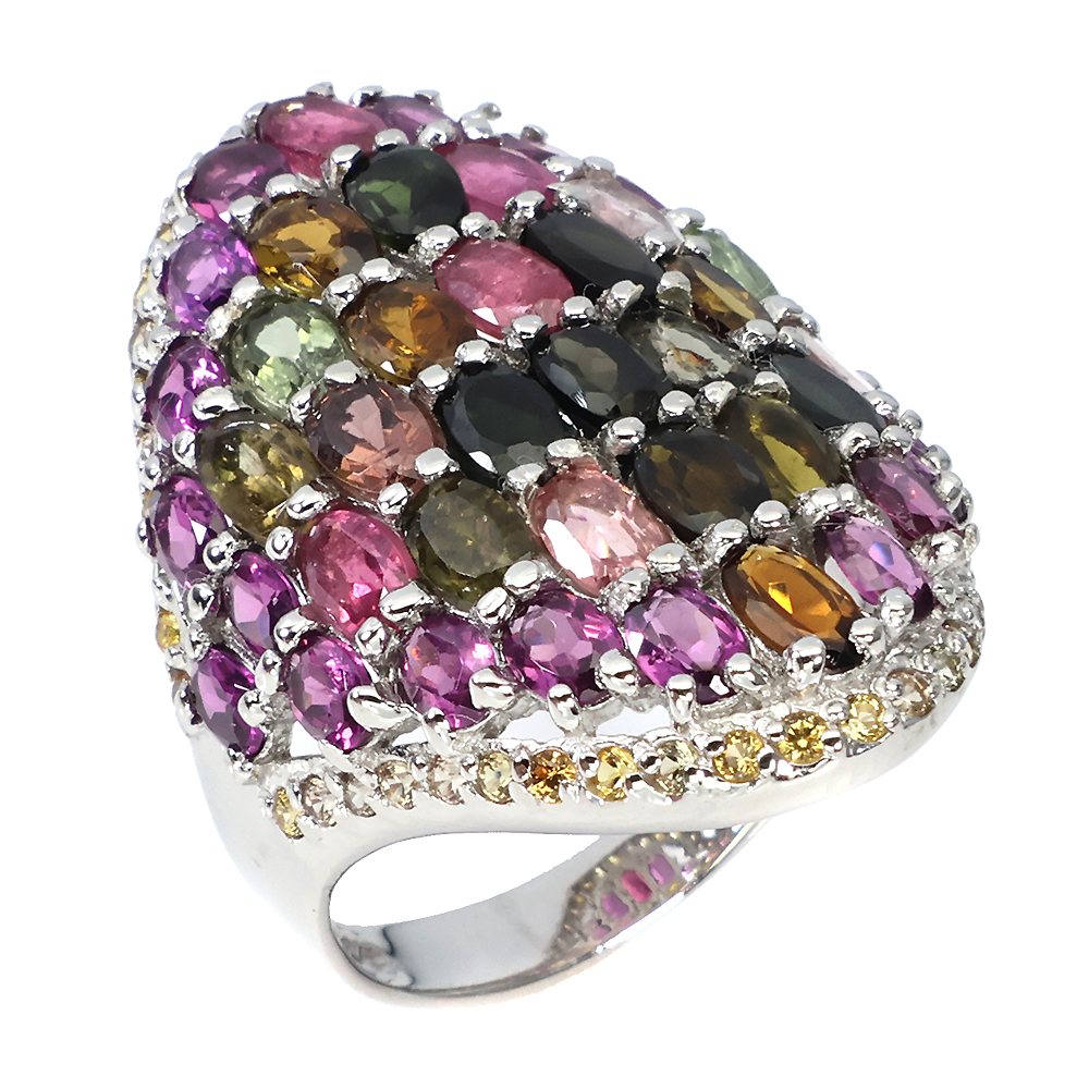 Unheated Oval Tourmaline Multi Color 5x3mm Sapphire 925 Sterling Silver Ring 8.5