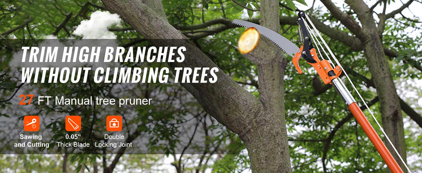 - Double Lock Design: Our pole tree pruner features double-lock joints, which makes locking effortless and firm. Weighing in at 13 lbs (5.9 kg), this pole reduced weight by 10% can be used for extended periods without causing fatigue. You don't need to worry about the pole bending or breaking during use.