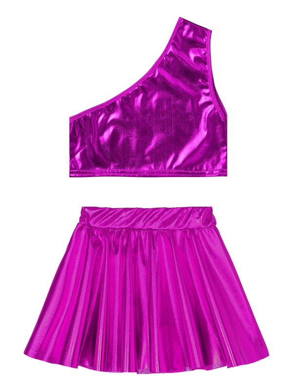 Kids Girls Metallic Crop Top with Skirt for Dance.