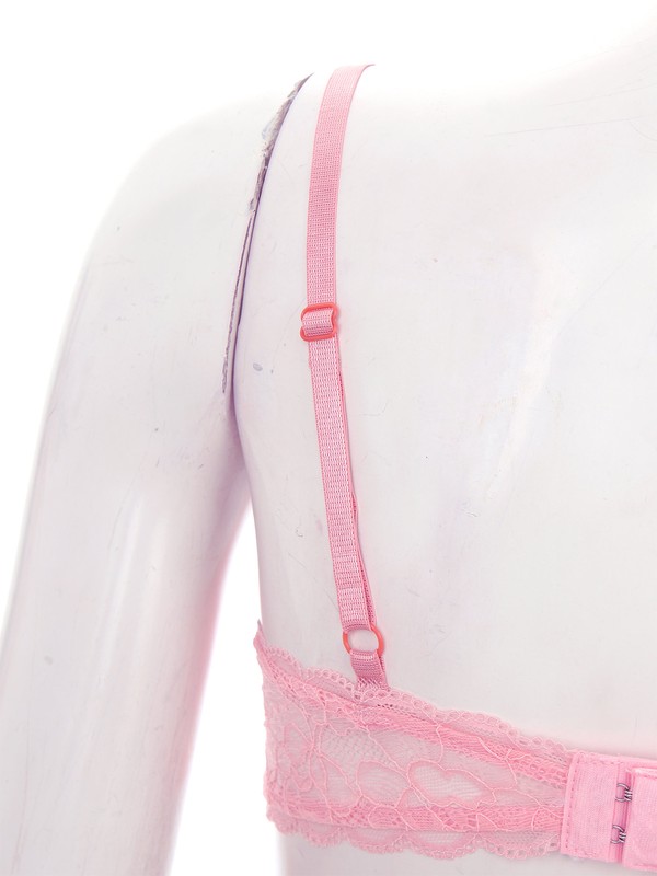 See-through lace bra, adjustable spaghetti straps and back hook-and-eye closure for a better fit.