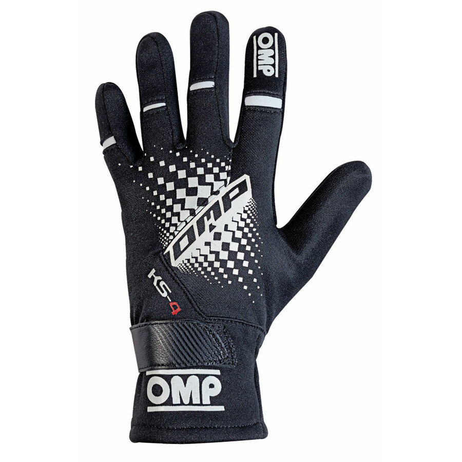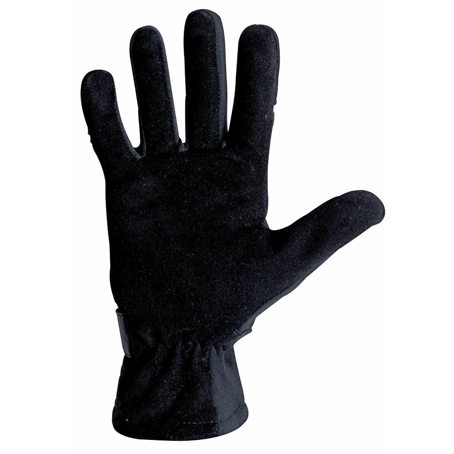 Guanto kart in resistente e confortevole tessuto elasticizzato con palmo in scamosciato. Elastico fermapolso e regolazione chiusura polso con cinturino velcrato in pelle.