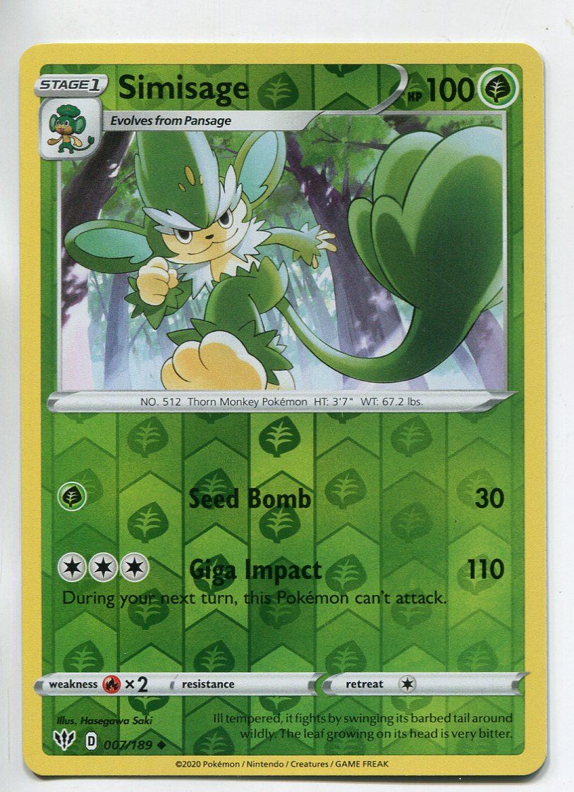 Pokemon TCG Sword & Shield Darkness Ablaze Reverse Holofoil Card #007 Simisage