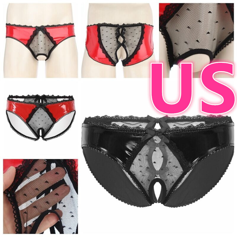 US Men's Satin Shorts Male Sleep Short Pants Loose Sissy Lingerie Bottoms Shorts