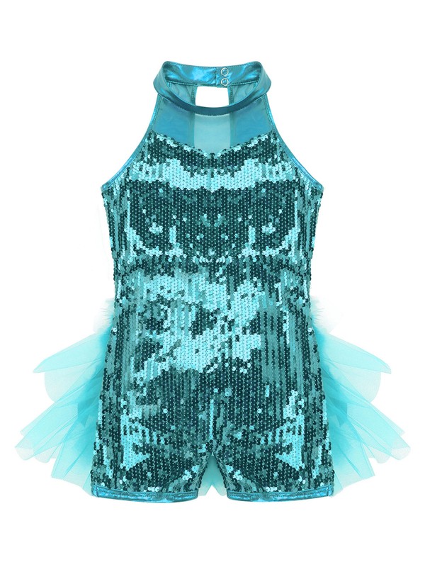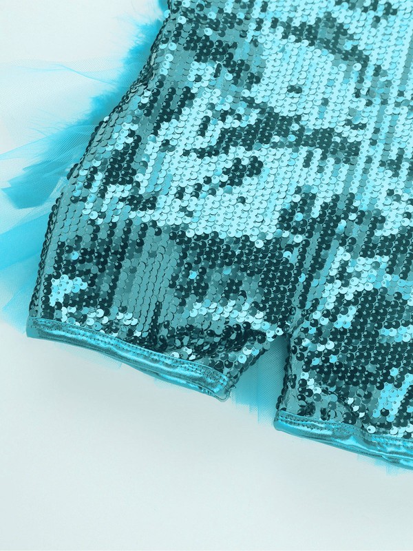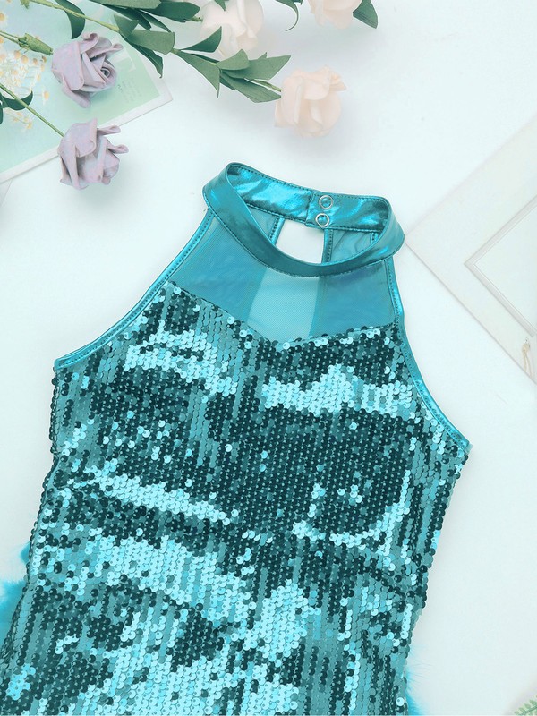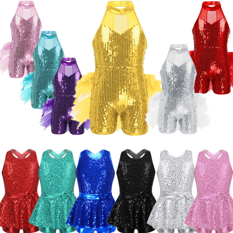 Kid Girls Sleeveless Jazz Ballet Dance Leotard Shiny Sequins Performance Costume