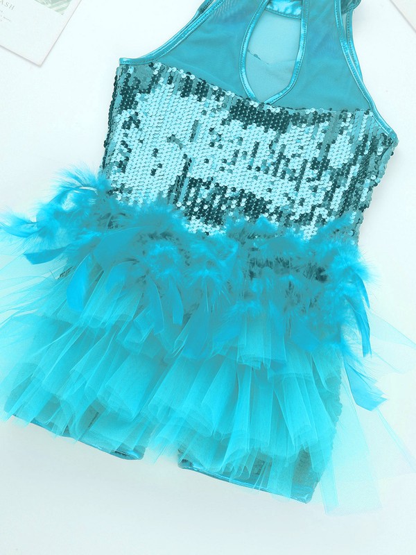 Dance leotard dress is made of polyester and sequins material, hand wash.