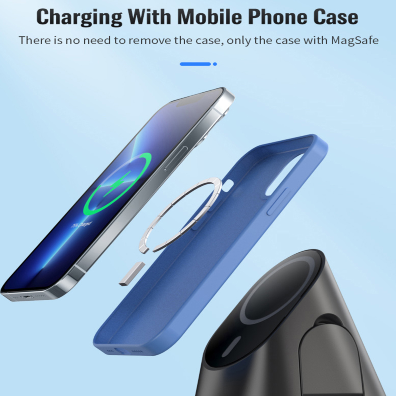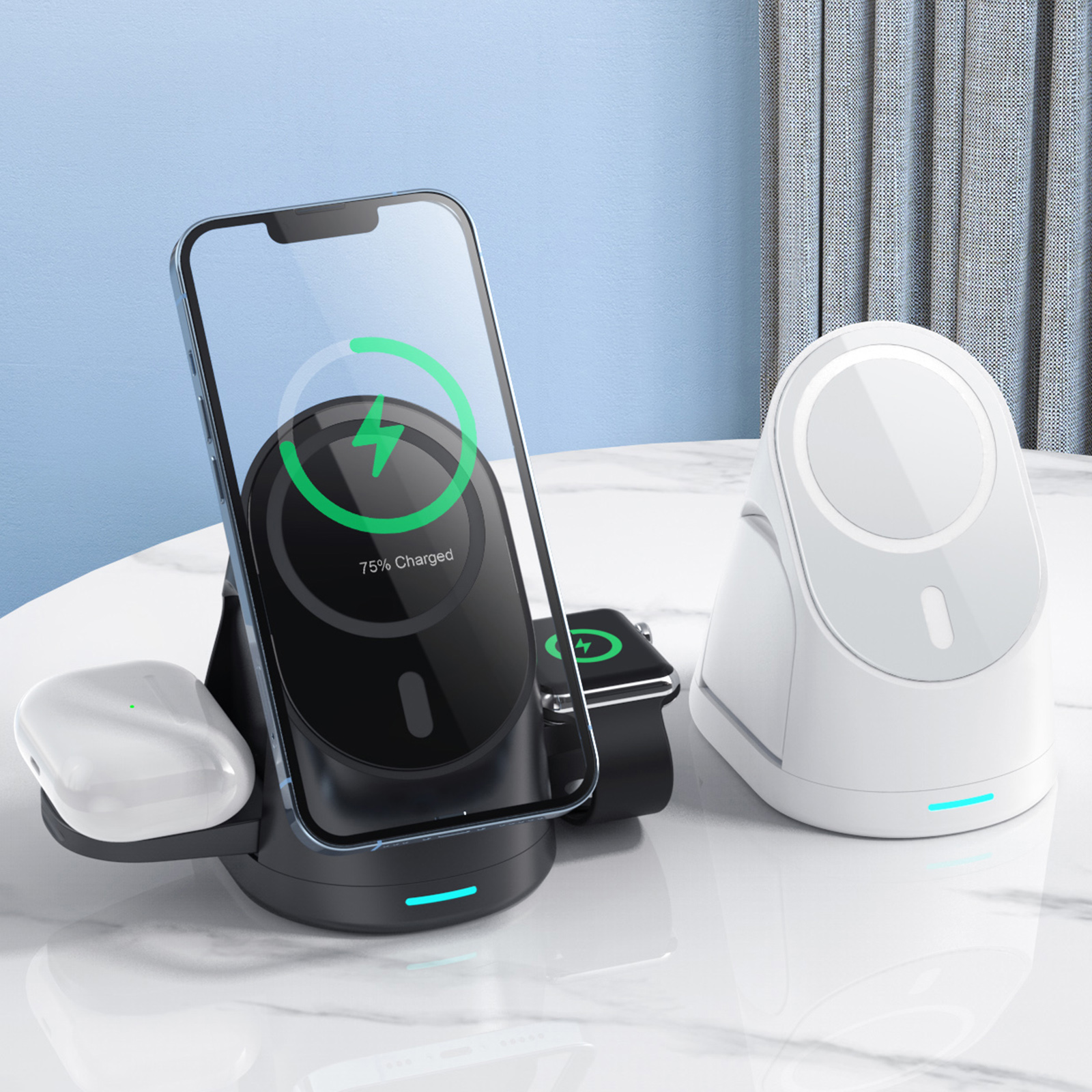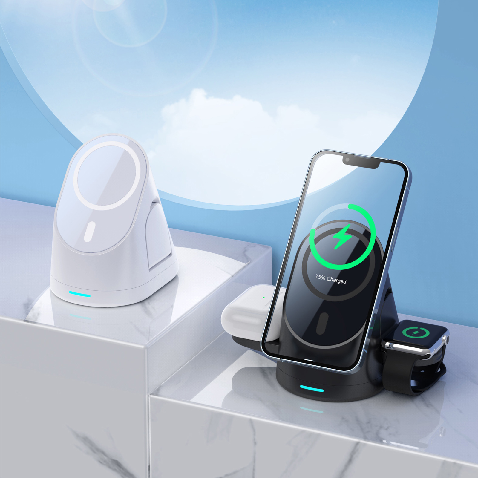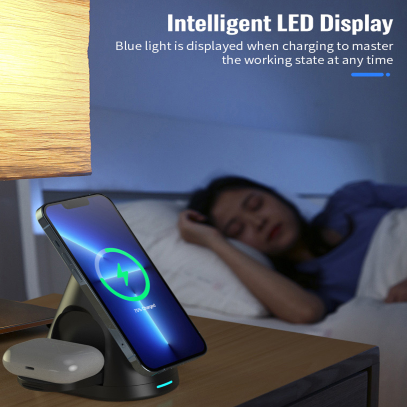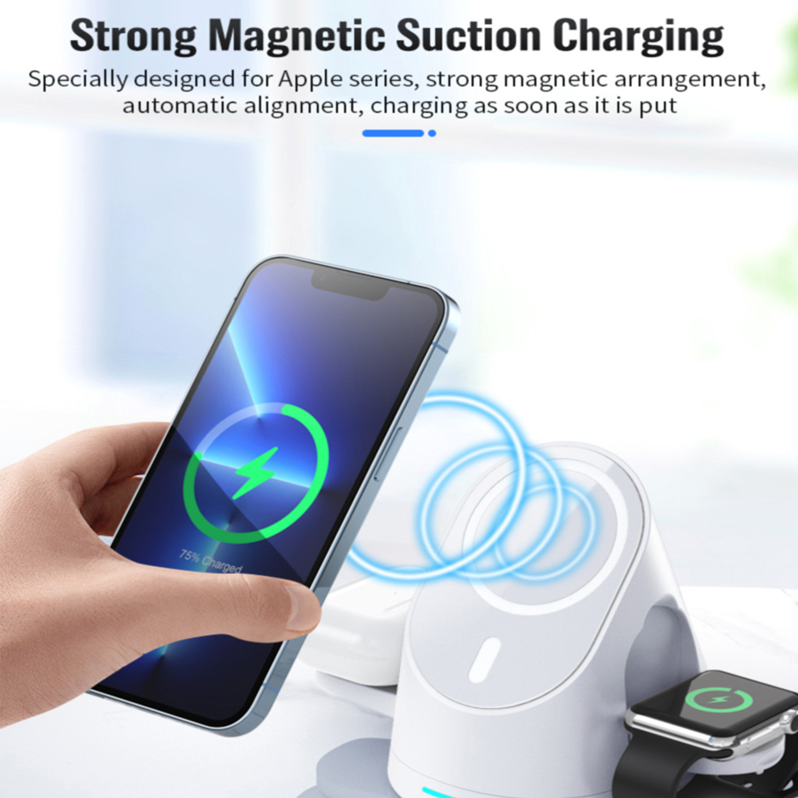 3In1 15W Wireless Charger Magnetic Vertical Charging Stand Base For Phone Watch