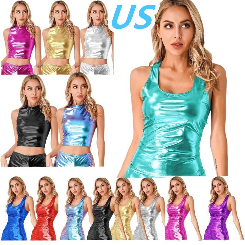 Women’s summer fashion faux leather tank tops, sleeveless and scoop neck.