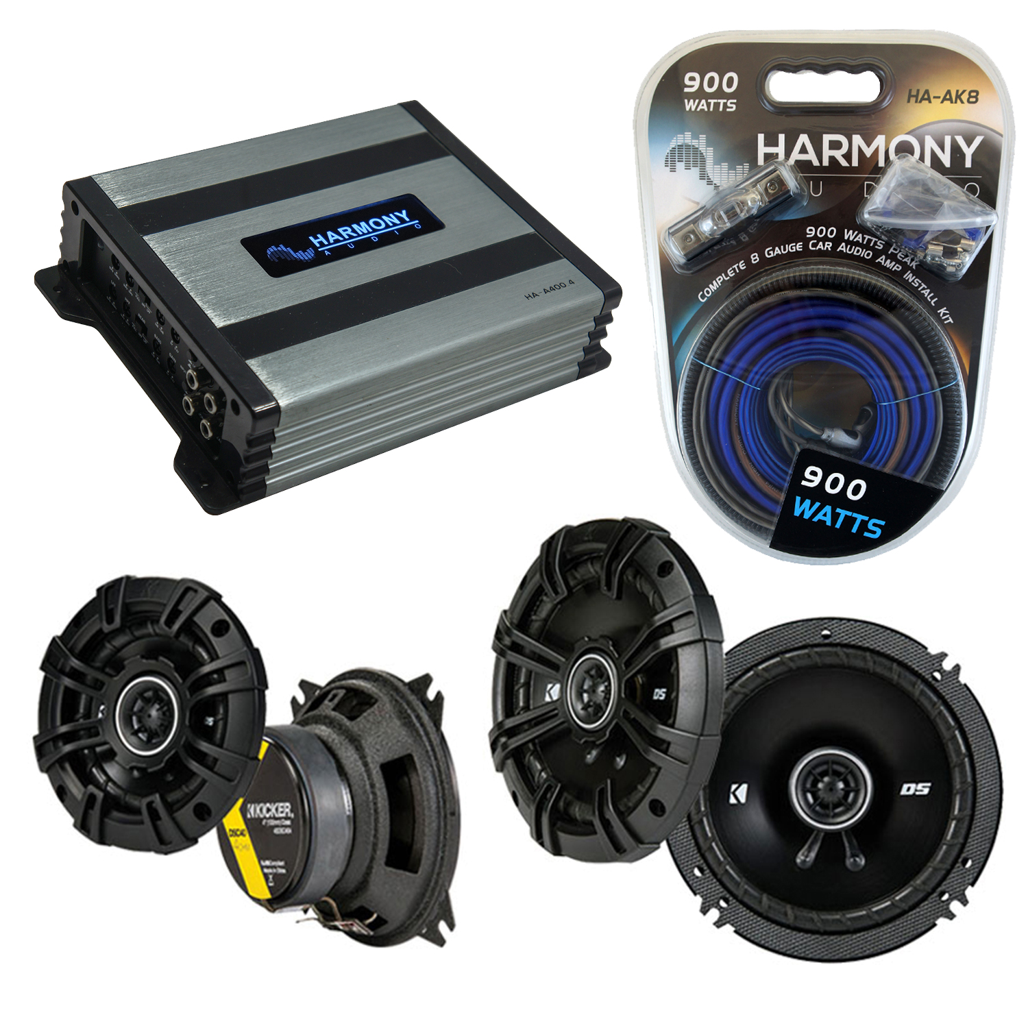 - 1 x Harmony Audio HA-A400.4 Car Stereo Alloy Amp 4 Channel 800W Fulll Range Speaker or Sub Amplifier