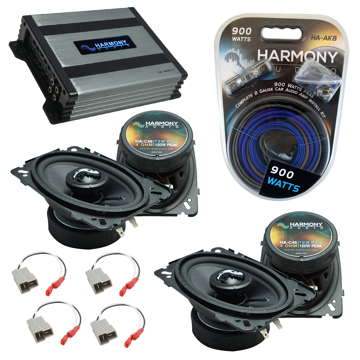 - 1 x Harmony Audio HA-A400.4 Car Stereo Alloy Amp 4 Channel 800W Fulll Range Speaker or Sub Amplifier