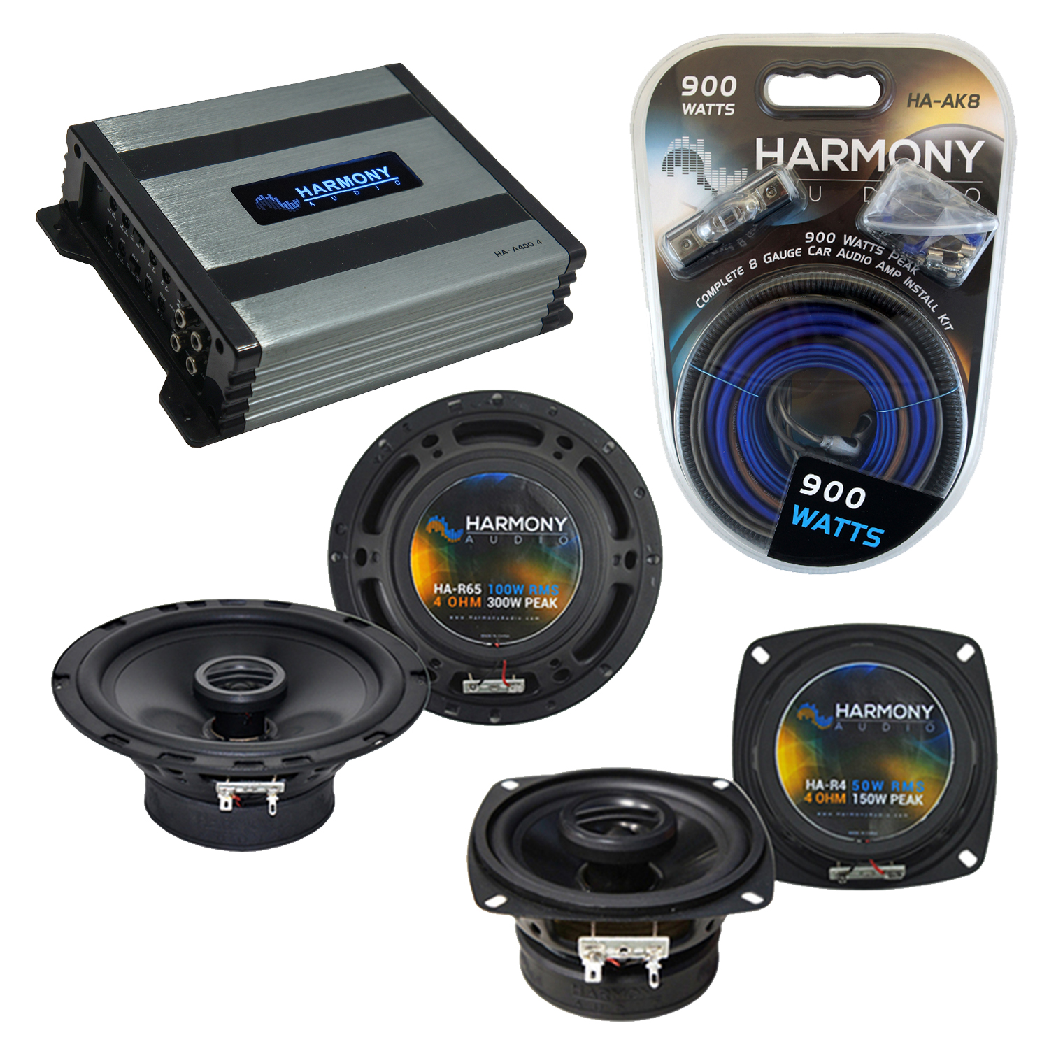 - 1 x Harmony Audio HA-A400.4 Car Stereo Alloy Amp 4 Channel 800W Fulll Range Speaker or Sub Amplifier