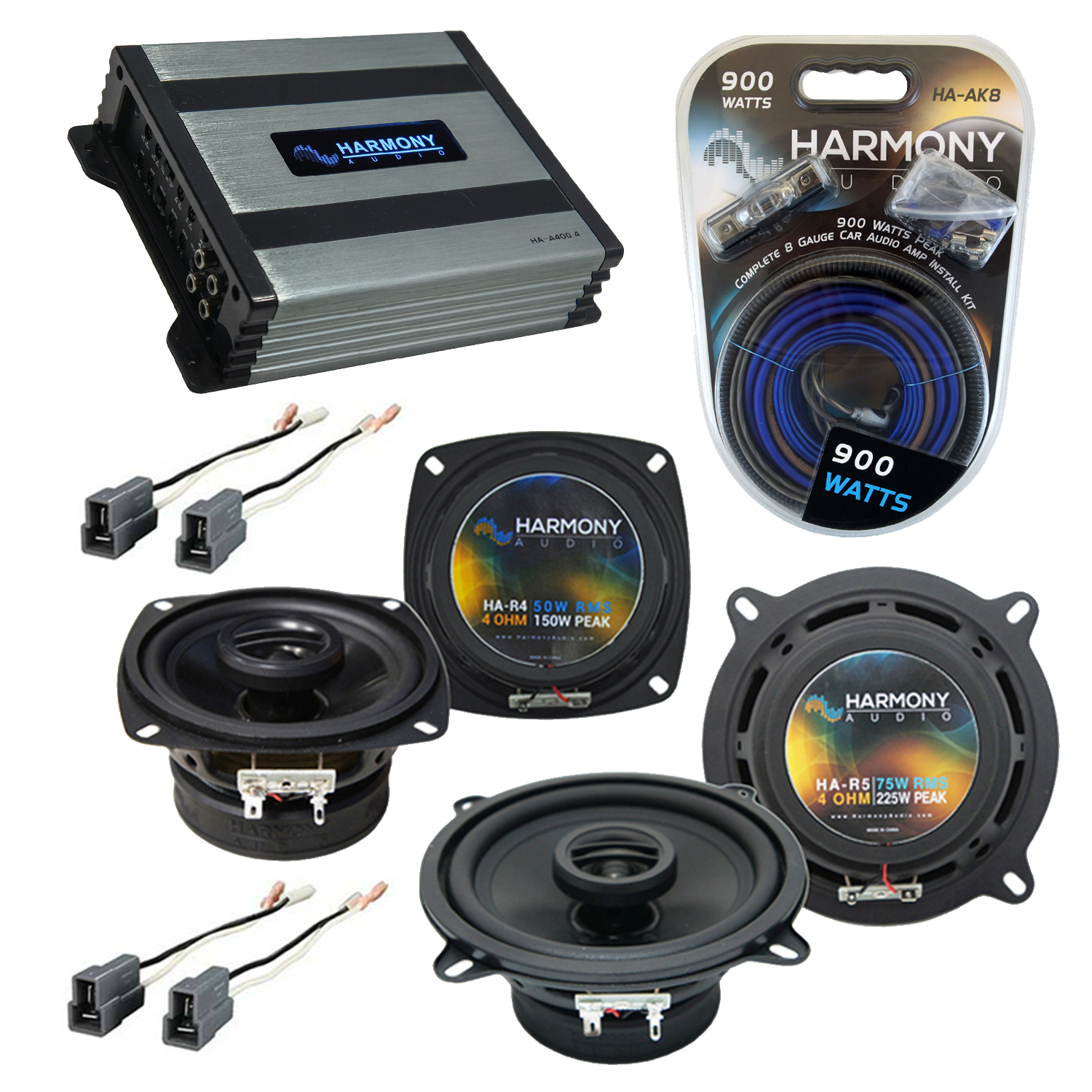- 1 x Harmony Audio HA-A400.4 Car Stereo Alloy Amp 4 Channel 800W Fulll Range Speaker or Sub Amplifier