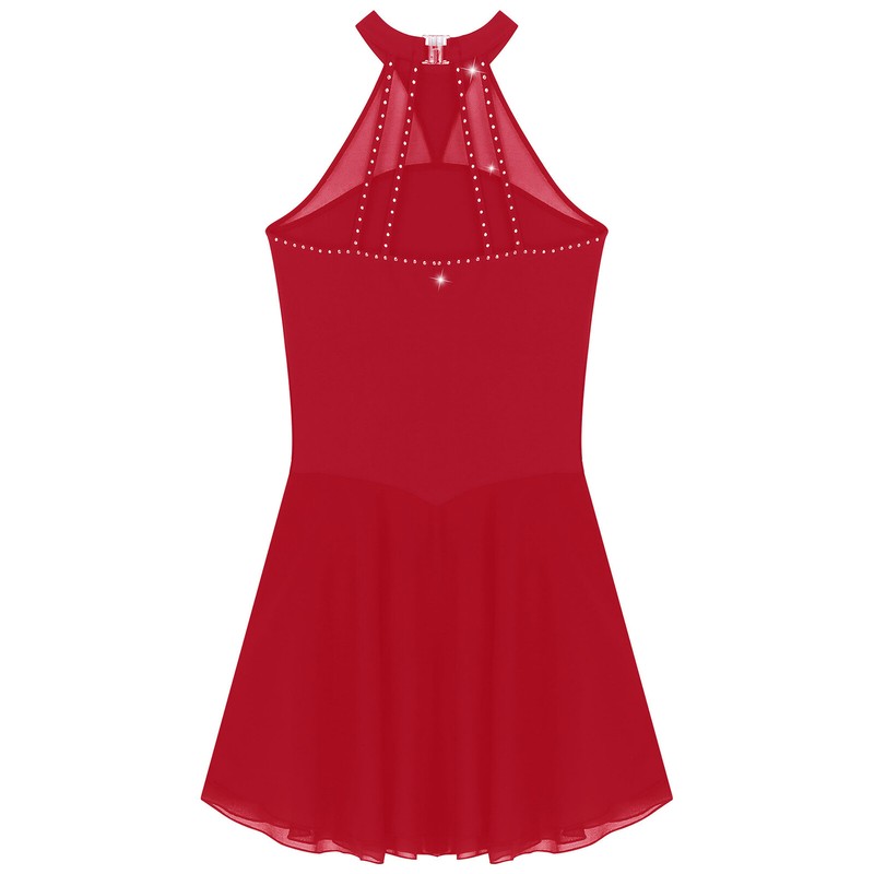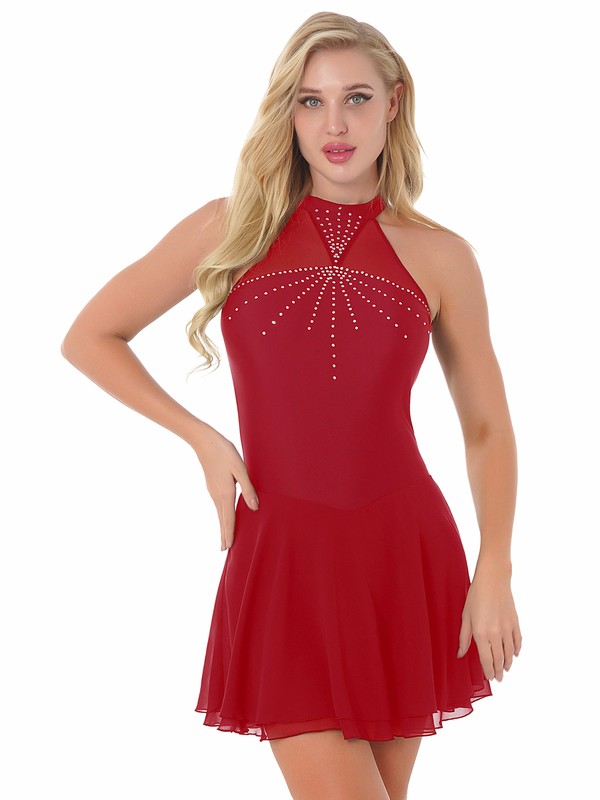 Womens Shiny Rhinestone Halter Dress Mesh Splice Sleeveless Dresses Damcewear.