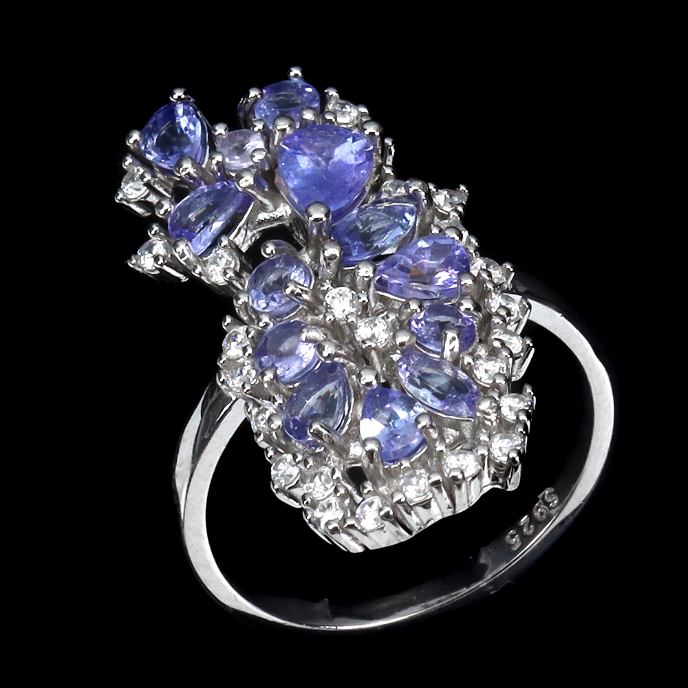 Unheated Pear Blue Tanzanite 5x4mm Simulated Cz 925 Sterling Silver Ring Size 7