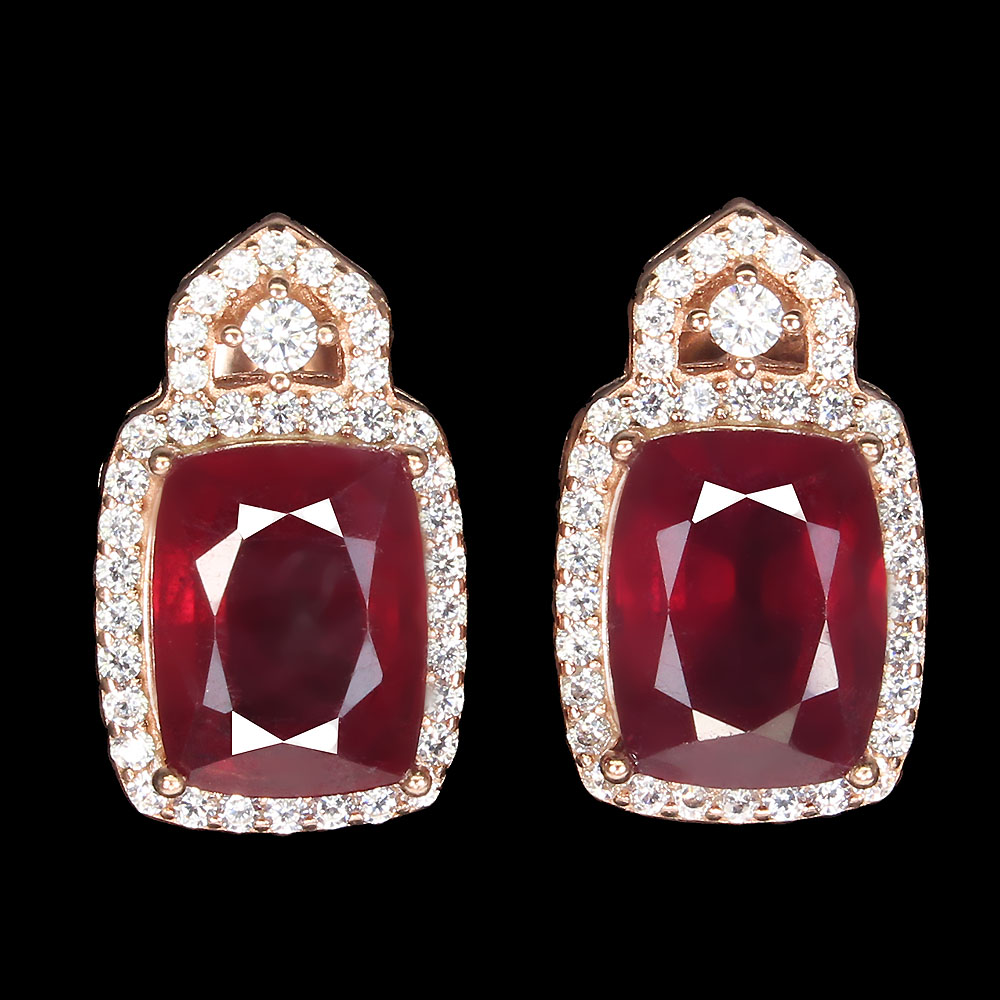 Heated Red Ruby 9x7mm Simulated Cz White Gold Plate 925 Sterling Silver Earrings