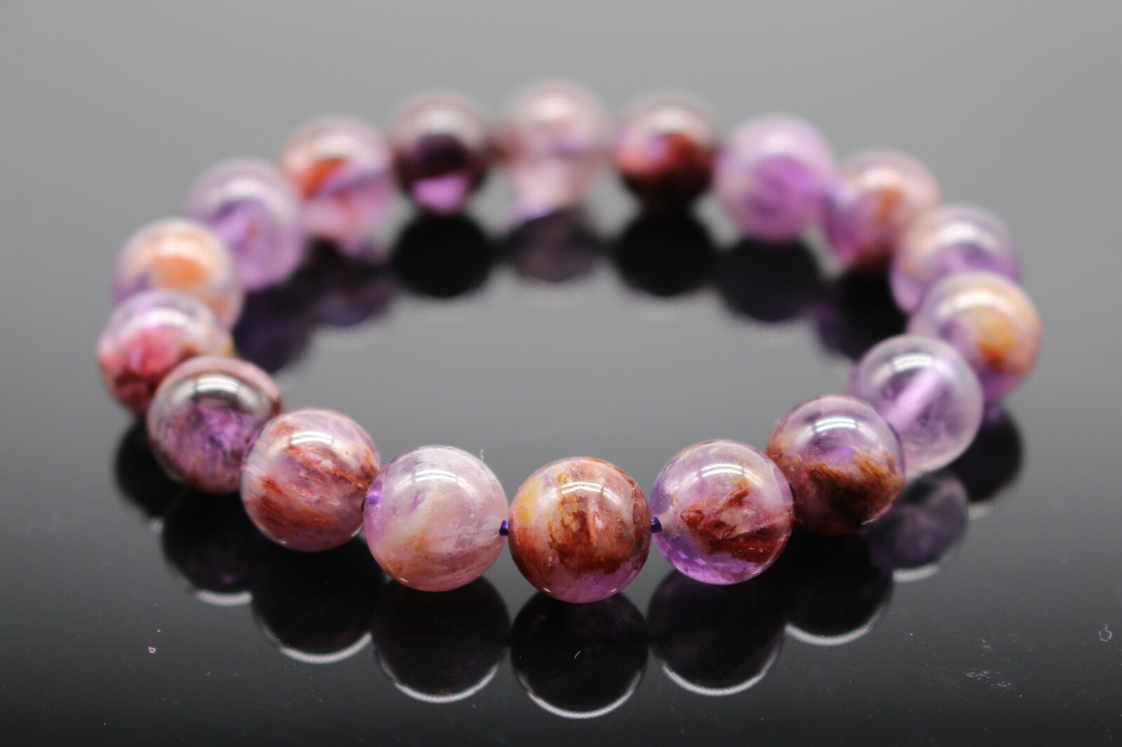 Die Super Seven Edelsteine sind hier in Form von Armbänder veredelt. Da jeder Stein einzigartig ist, können unterschiedliche Variationen von Farbe, Textur und Größe vorhanden sein. Sie können zwischen unterschiedlichen Durchmessern auswählen.