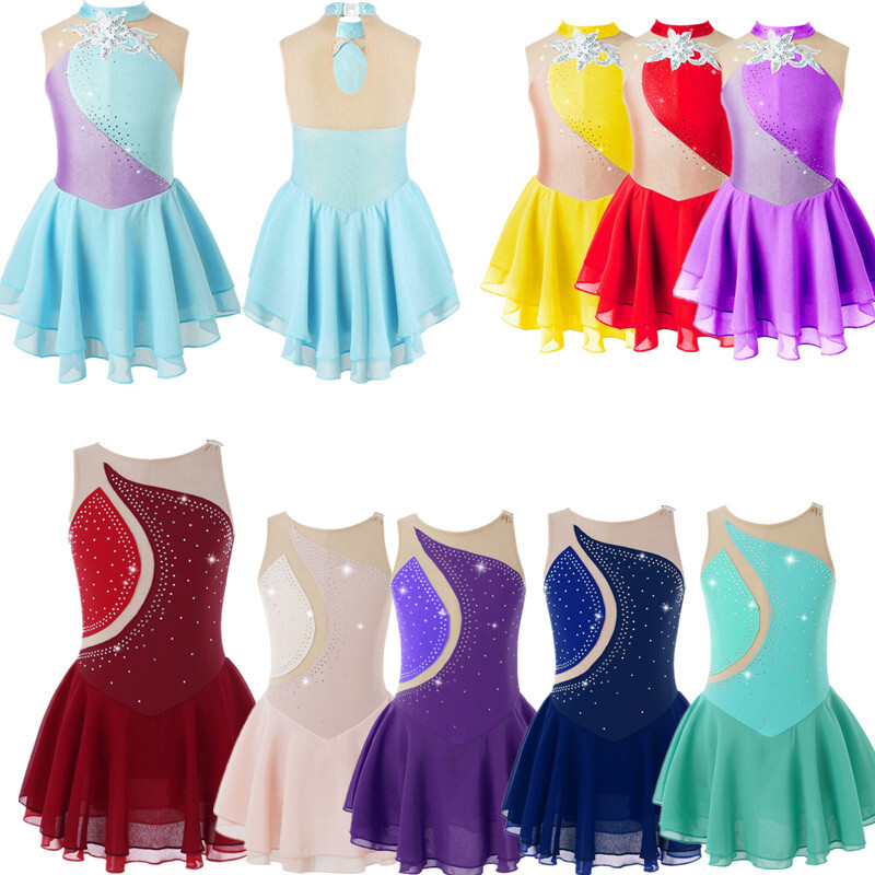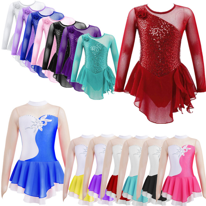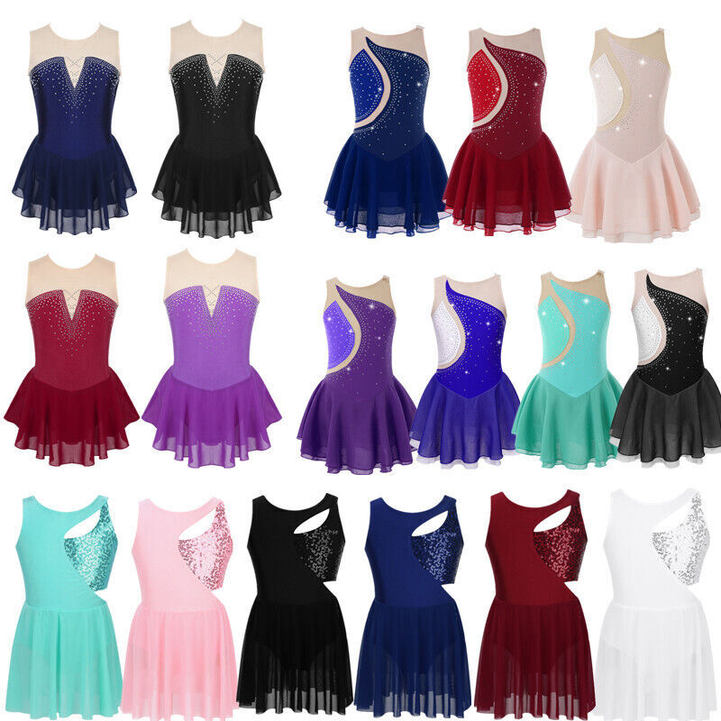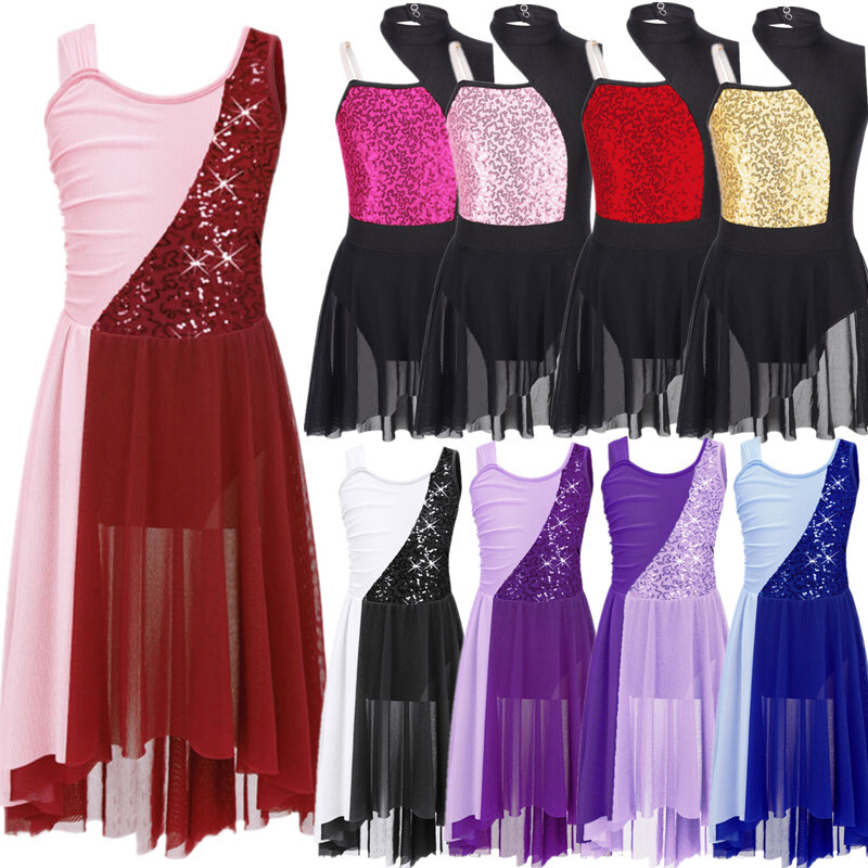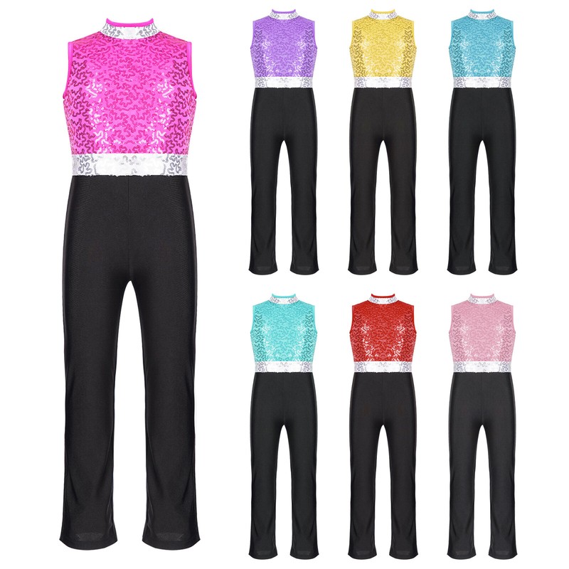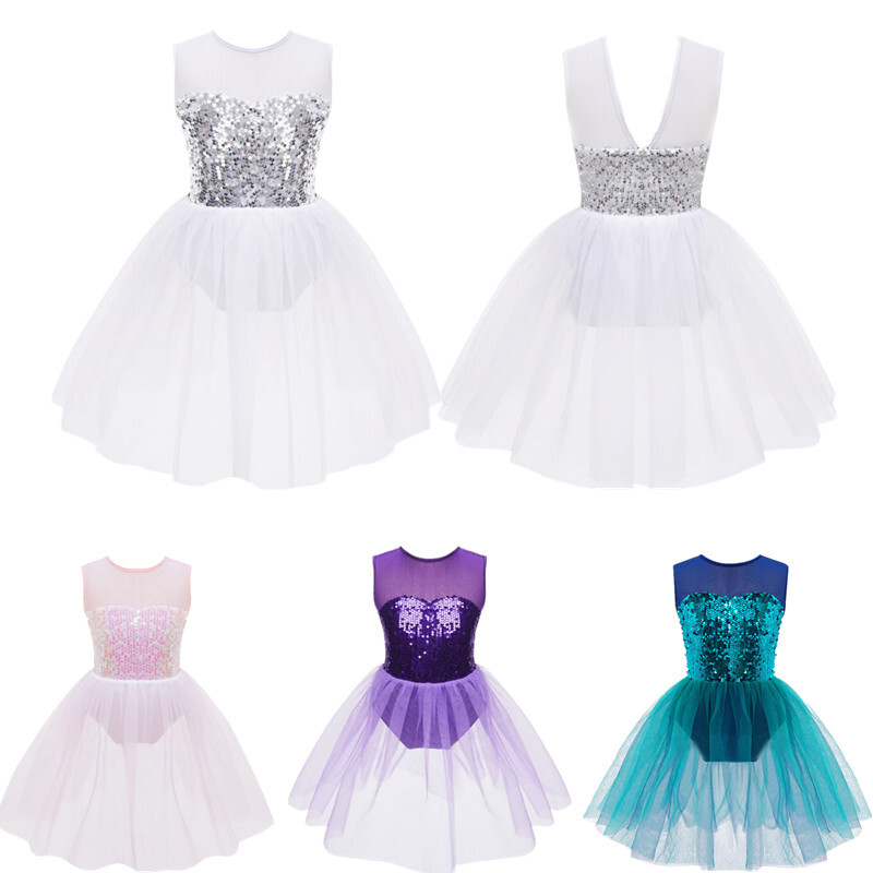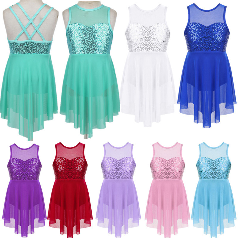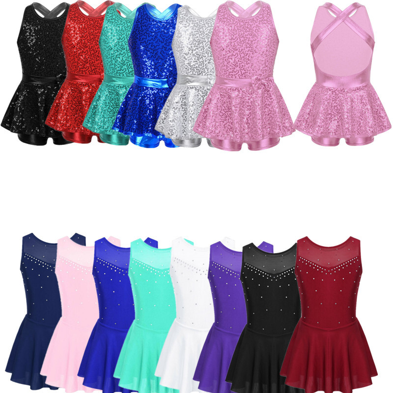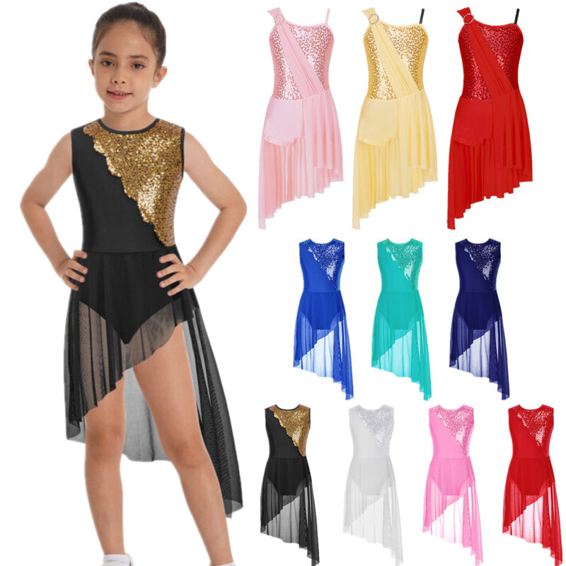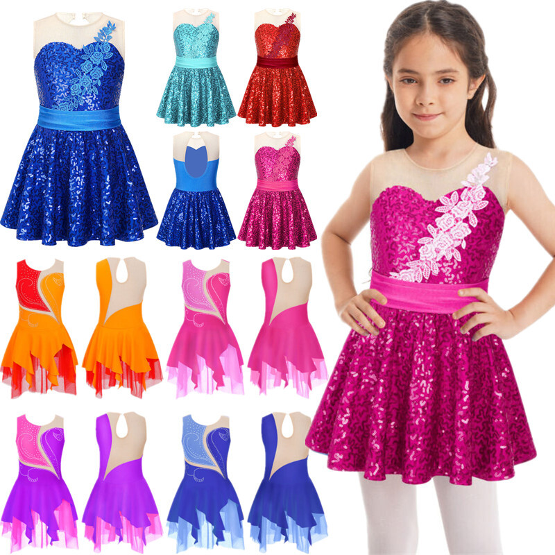 Kids Girls Modern Latin Jazz Dance Outfits Crop Tops Skirt Shiny Sequins Costume