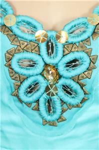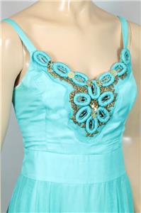 aqua blue color fit and flare long maxi dress embellished with beaded/ embroidered design.