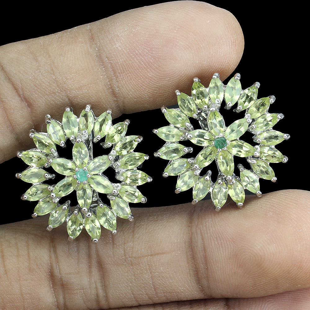 Unheated Marquise Green Peridot 5x2.5mm Emerald 925 Sterling Silver Earrings
