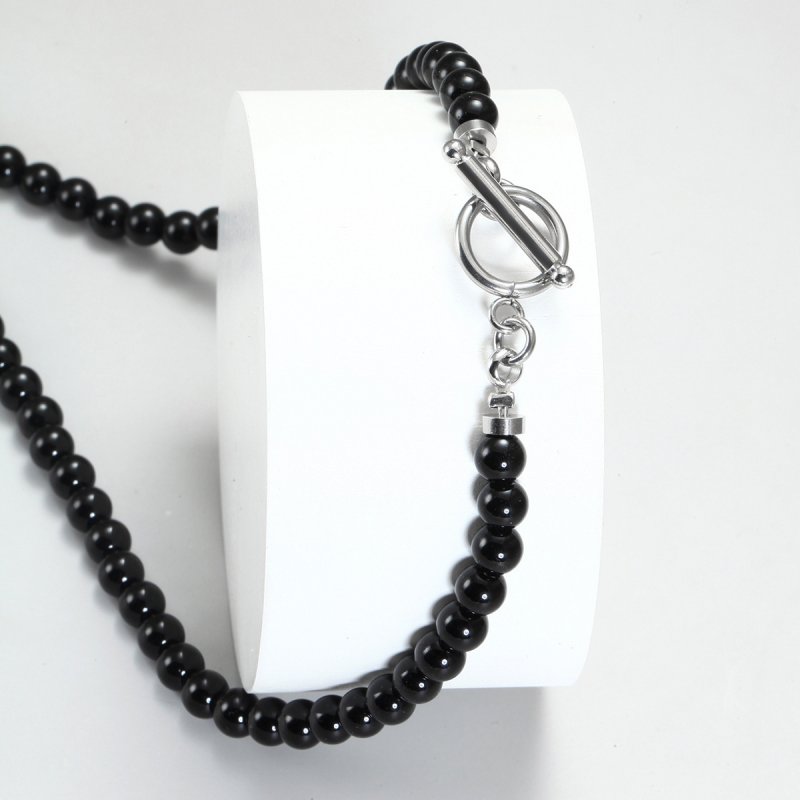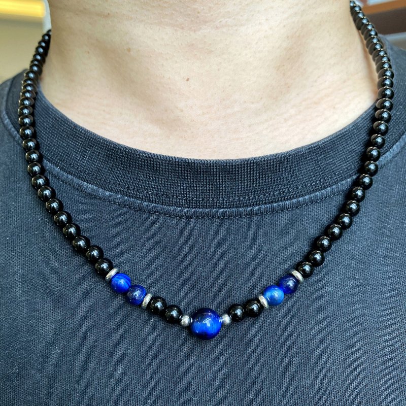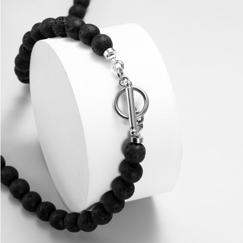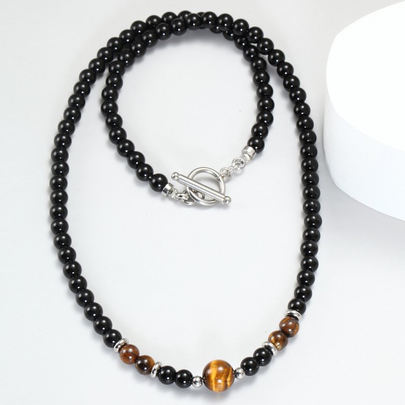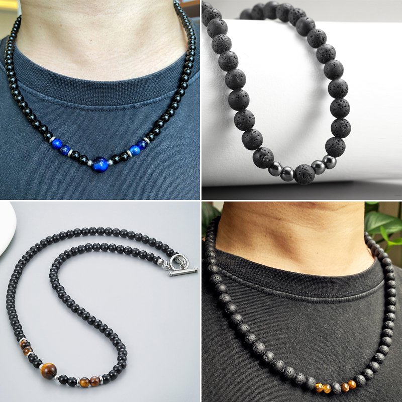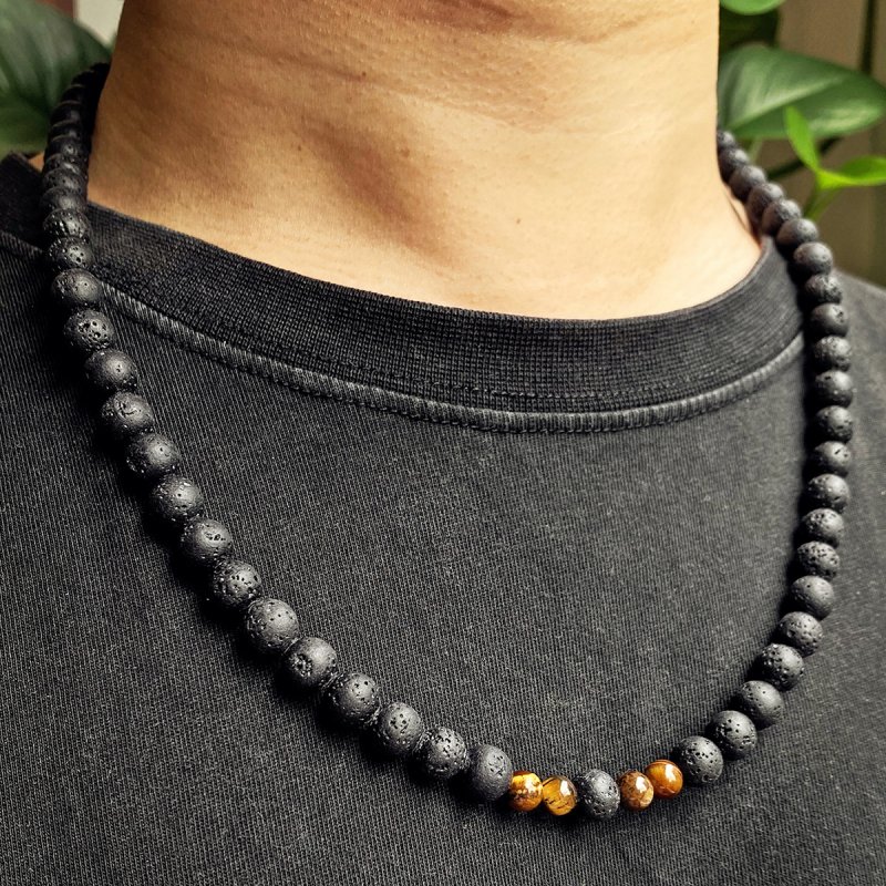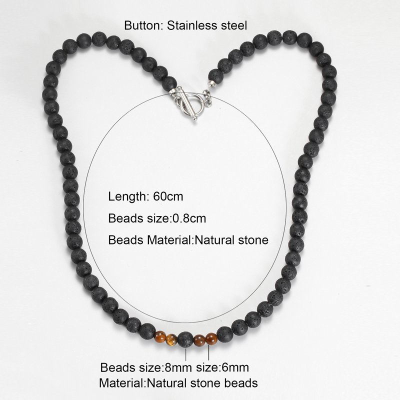 Stainless Steel Tiger's Eye Lava Rock Stone Beaded Necklace Men's Jewelry Gift