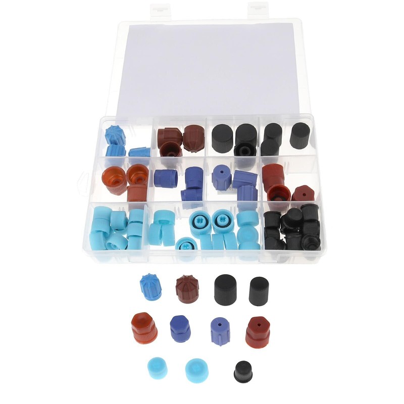 Note: 1.The real color of the item may be slightly different from the pictures shown on website caused by many factors such as brightness of your monitor and light brightness. 2.Please allow slight manual measurement deviation for the data. Package 77pcs Auto A/C Dust Cap Kit (Note: Other accessories are not include.)