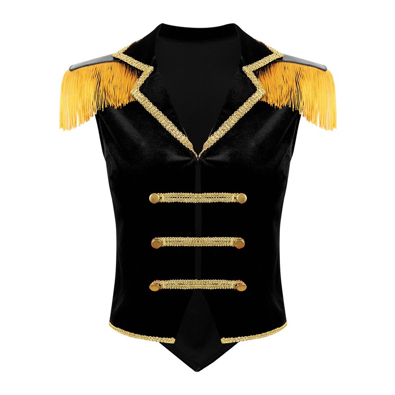 You can wear this circus ringmaster velvet vest match with suit pants, leather pants, skirt, gloves, whip or hat.