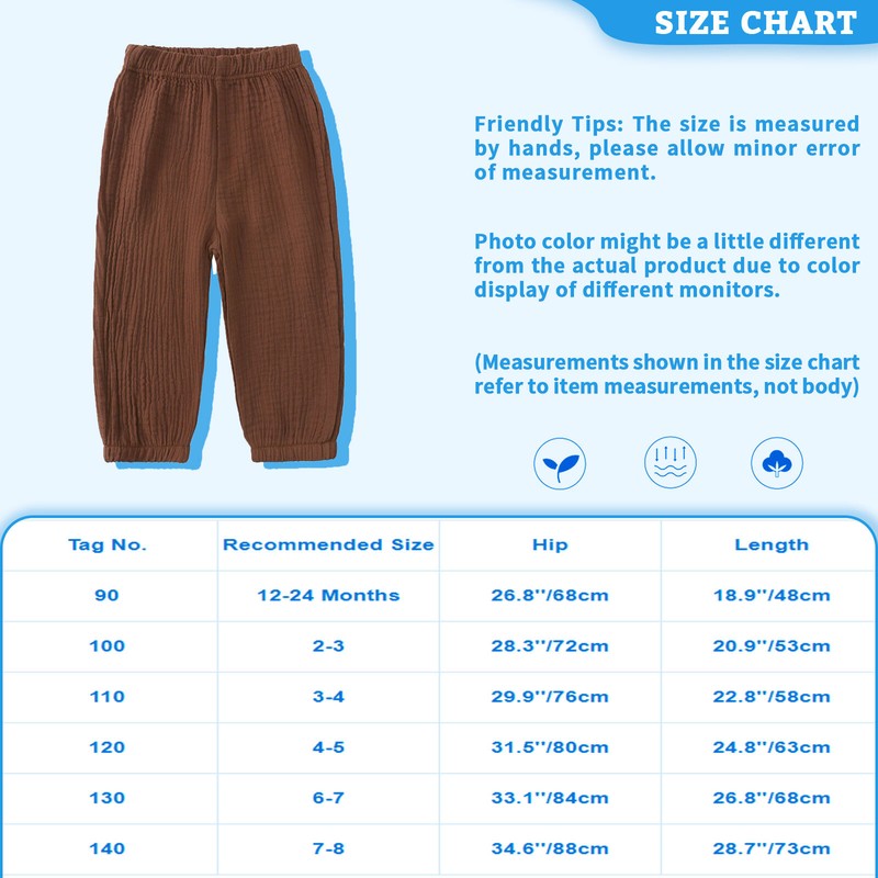 Strong sweat absorption, keep baby’s skin dry and cool, comfy and loose pants allow children to move freely .
