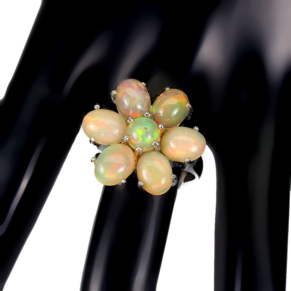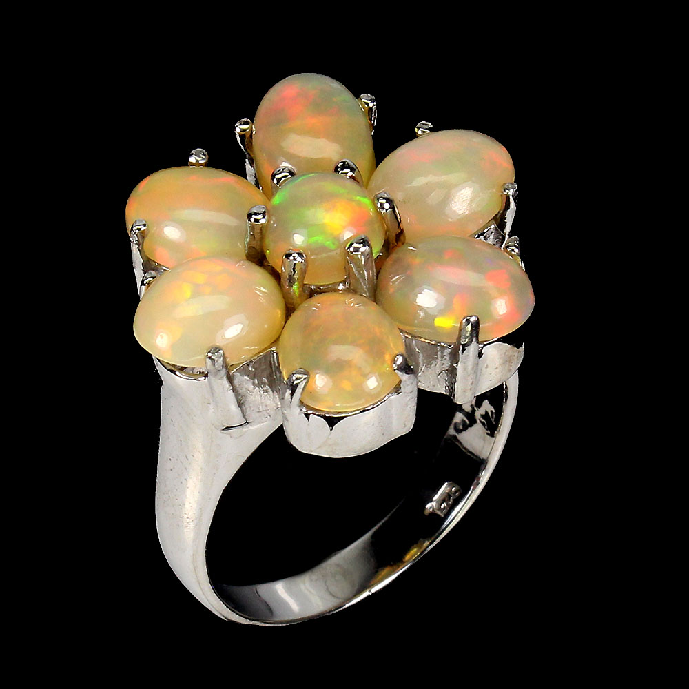 Unheated Oval Fire Opal Rainbow Full Flash 8x6mm 925 Sterling Silver Ring Size 9