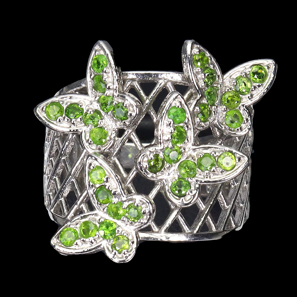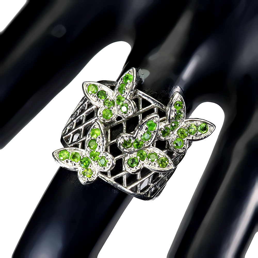 Unheated Round Green Chrome Diopside 1.5mm 925 Sterling Silver Butterfly Ring 8