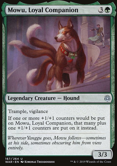 | | Name: | Mowu, Loyal Companion | | Set: | War of the Spark | | Number: | 167 | | Condition: | Light Play | | Language: | English | | Variation: | Non-Foil | |