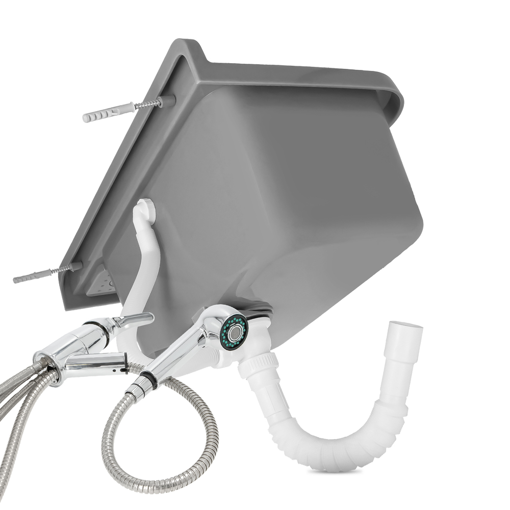 Ausgussbecken 60 x 34 cm Grau mit Regal Spültischmischer mit Ausziehbrause