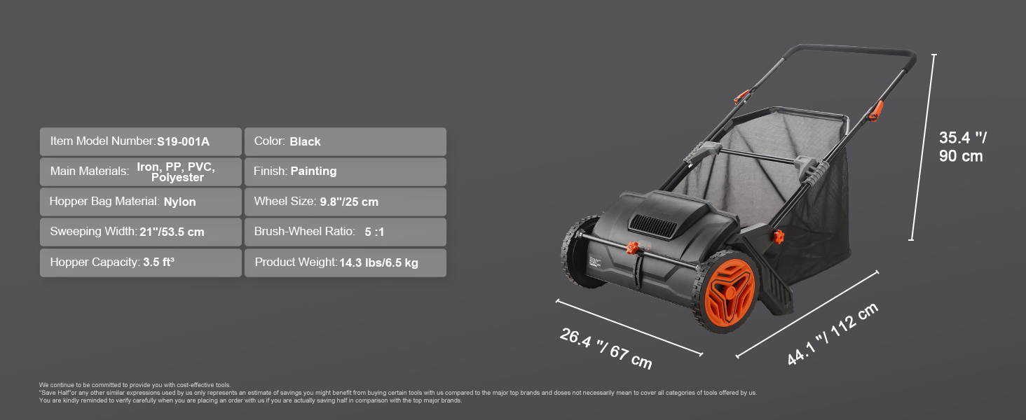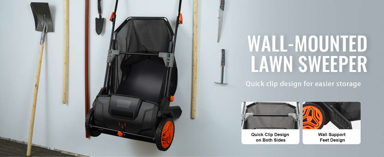 • Install & Store with Ease: Our hand push lawn sweeper has an advanced storage design, making it easy to install and store with quick clips on both sides. Once the yard work is complete, it can be stored in a shed or hung on a garage wall. The bottom support feet lean against the wall without tipping over.