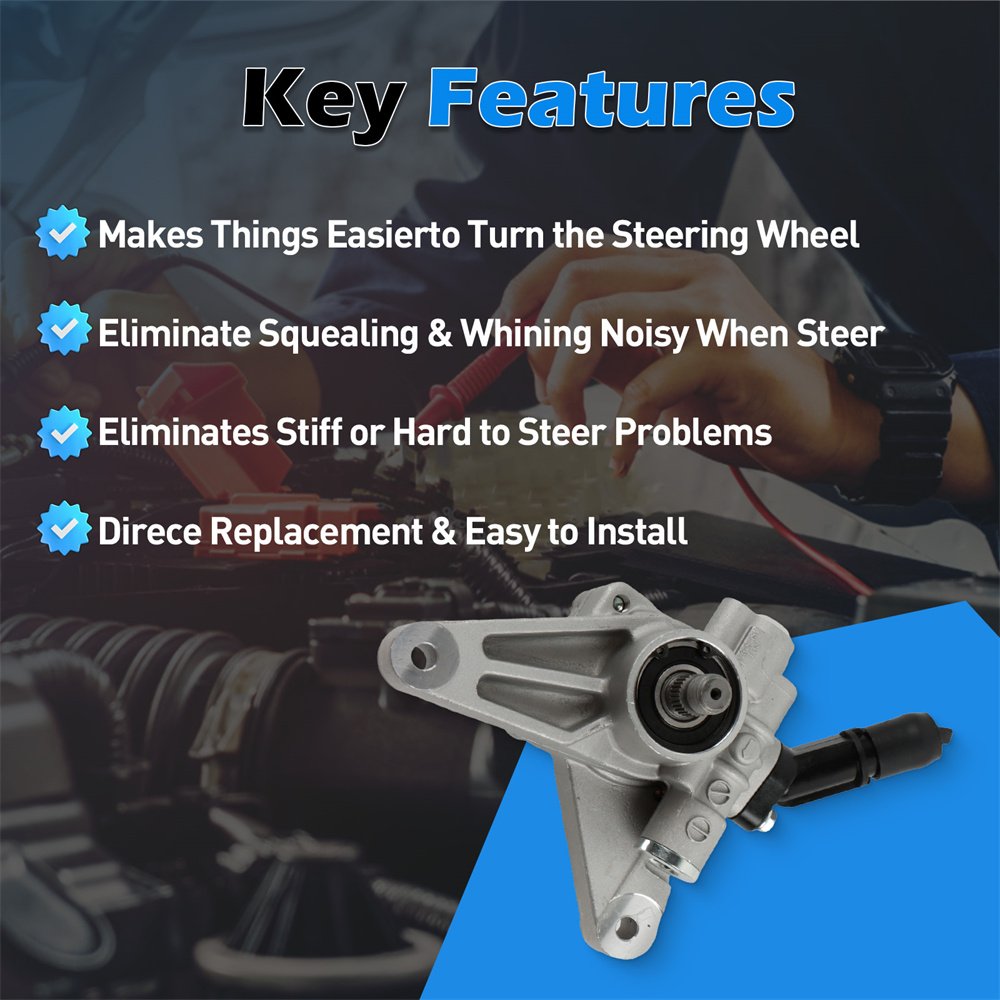 1PC Power Steering Pump For HONDA ACCORD 3.0 V6 2003-07 21-5349 ①Product Specifications Size: 16x16x16(cm) Weight: 1.65kg Material: Aluminum Color: Silver Placement on Vehicle: Front Hose Port Type: O-Ring Housing Material: Aluminum Power Steering Outlet Thread Size: Power Steering Outlet ID Size: 0.71 Power Steering Pump Inlet Attachement Type: Hose Barb Power Steering Pump Outlet Attachment Type: Bolt-on Pulley Attachement Type: Bolt-on Pulley Included: No Reservoir Included: No ②OEM/Interchange Part Numbers 56110-RCA-A01,21-5349 ③Fitment For Honda Accord 3.0L 2977CC V6 GAS SOHC 2003-2005 For Honda Accord 3.0L 2997CC 183Cu. In. V6 GAS SOHC 2003-2007 For Honda Accord 3.0L 2997CC V6 ELECTRIC/GAS SOHC 2005-2007 For Honda Accord 3.0L 2997CC V6 GAS SOHC 2006-2007 ④Features Built to strict quality control standards 100% factory tested IATF16949 100% Compatible with OEM Parts, meets Original Equipment Manufacturer (OEM) Standards This steering pump is made of high-quality material and maintains an excellent strength to give the parts long-term performance the reservoir into the steering gear and keeps the wheels running in the right conditions This steering system pump is a direct replacement. If your original power steering pump is failing or leaking, this replacement steering pump could be your solution. If you have symptoms like whining noise while turning the wheel, steering wheel slow to respond, stiff steering wheel, or squealing & groaning noises when the vehicle starts, and you might need to replace your old Power Steering Pump with this one. ⑤Package Include 1PC Power Steering Pump ⑥Attention Ⅰ 1. When disassembling the steering pump of the original car,drain the original old hydraulic oil at the same time. 2.Clean the oil can and the oil pipe, check whether the oilcan is damaged,check whether the filter of the oil can isblocked,check whether the oil inlet hose is hardened andaging, prohibit the oil with impurities, and prohibit the oil fromturning black and opaque Ⅱ 1.When installing the steering pump,you must lock the oilinlet pipe clamp and check whether it is firmly to prevent airintake. 2.Replace the sealing ring of the high pressure oil pipelinking the steering pump to prevent oil leakage, resulting inmisjudgment of oil leakage from the steering pump. Ⅲ note! Follow the process 1. Instali the steering pump 2. Fill the oil pot with oil, 3. After starting the engine, do not turn the steering wheelLet the steering pump circulate the oil by itself. Observe theoil in the tank and replenish the oil in time until the properlevel is reached.After the installation is complete, turn thesteering wheel at last. ⑦Note before installation, be sure to clean the oil pot and oil pipe. lfthere are impurities, after the car is running, the impurities inthe oil pot and oil pipe will enter the steering pump, resultingin the pump not working. Once the pump does not work. please contact us in time and we will send a video of cleaningthe pump. Then follow the steps in the video to clean thepump, the pump will be Ok.