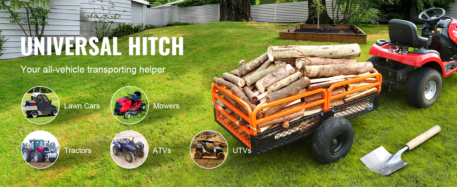 Effortless Universal Compatibility: Easily attach this tow-behind dump cart to your tractors, lawnmowers, ATVs, UTVs, and other equipment without requiring any specialized tools. Simplify your yard hauling tasks with ease.