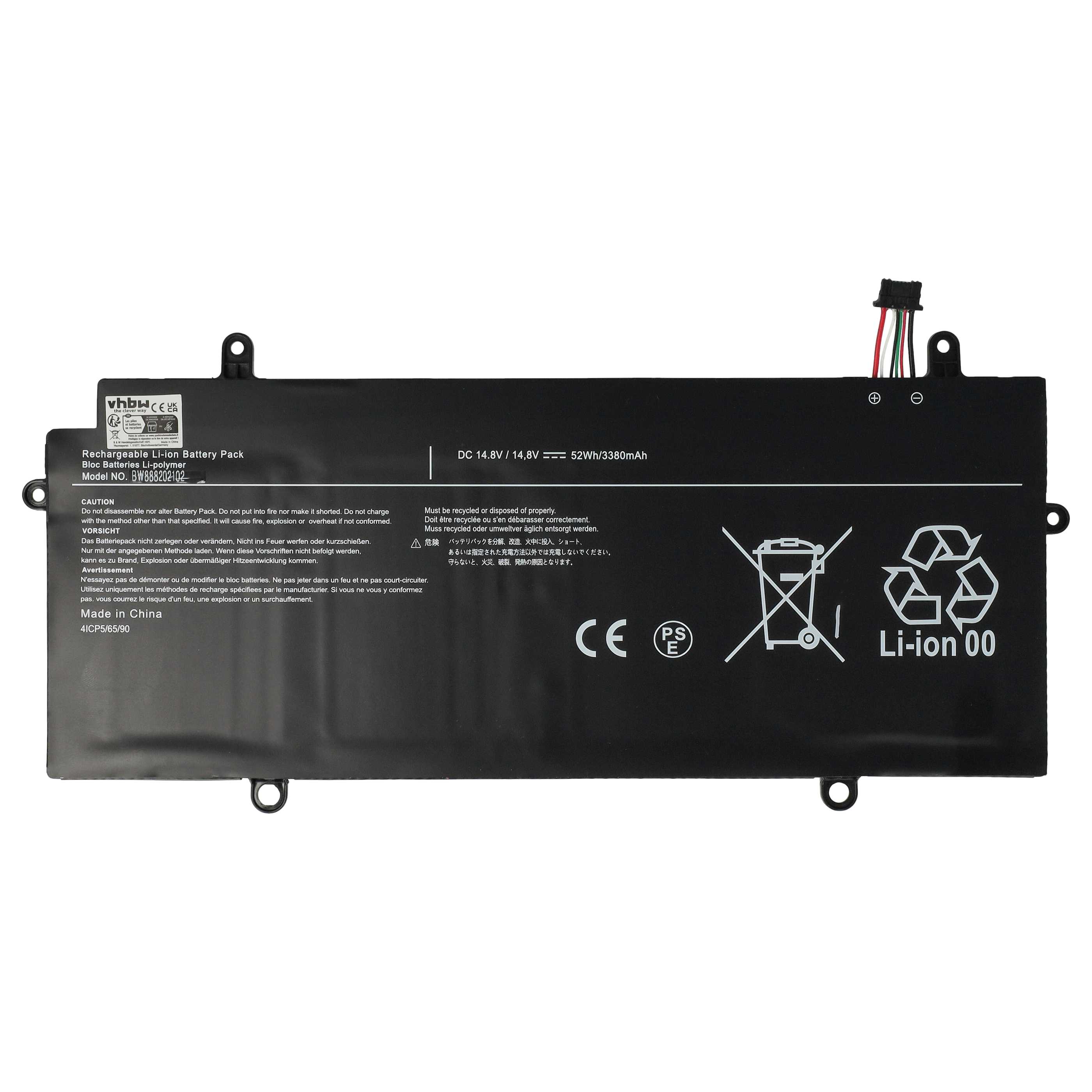 vhbw Batterie rechargeable pour Toshiba Portégé Z30-C-16K, Z30-C-16C, Z30-C-17G, Z30-C-16M ordinateur portable ou Netbook (Li-polymère, 3350mAh, 14,8V)