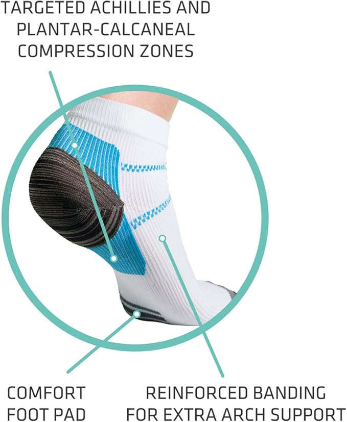 Features Of The THERMOSKIN Walk-On Plantar FXT Compression Socks 15-30mmHg (White) Pair/Medium