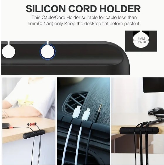 • Constructed by durable premium silicon material, this 7 slot cable holder clip in black color is eco-friendly, soft and easy to organize your desk and save maximum space for you.