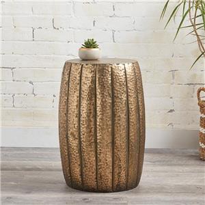 This uniquely shaped metal side table is an eye-catching setting for a display of succulents, collectibles, candles, or other home décor.