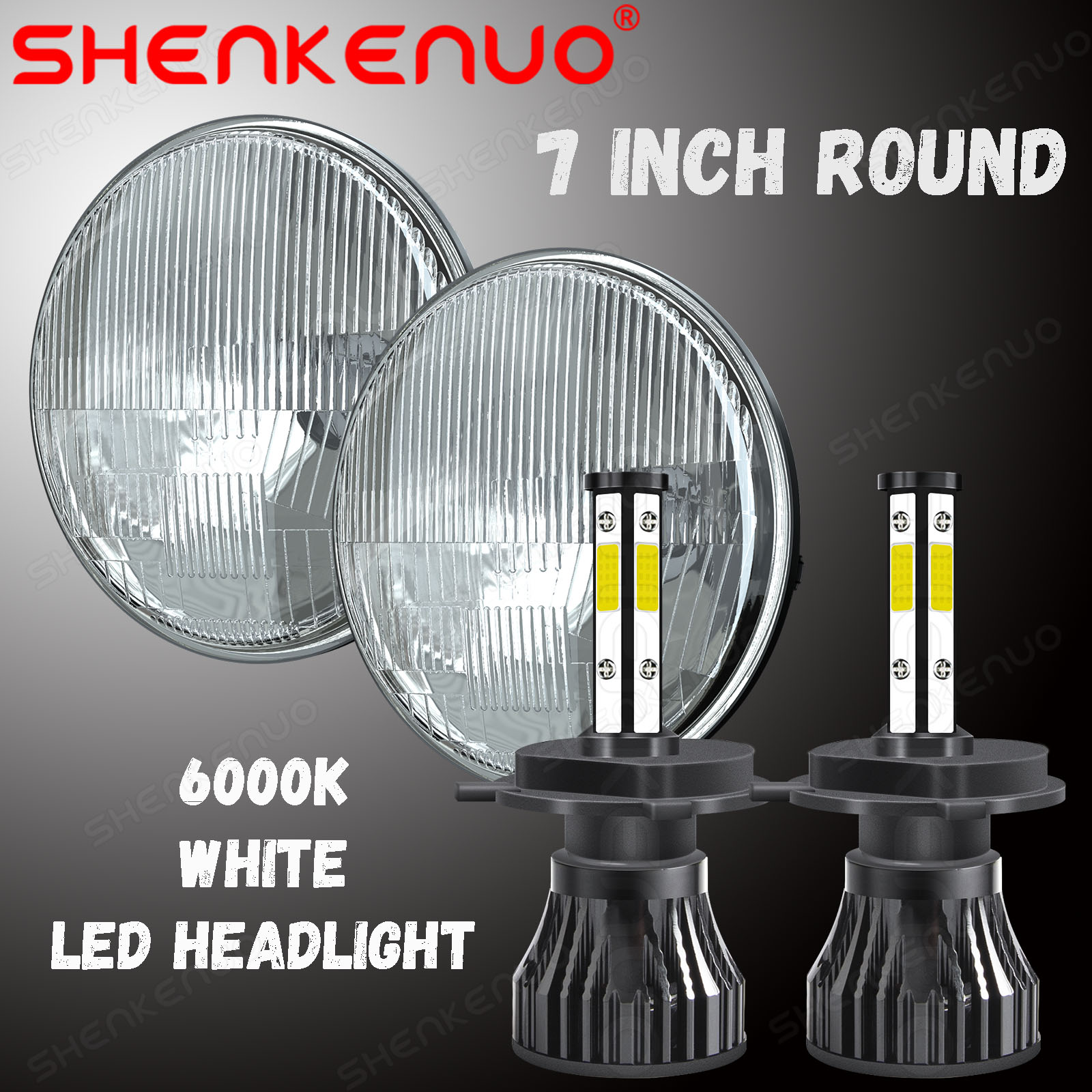 7" Inch Round Diamond Crystal Clear Glass Lens / SHENKENUO Headlight Conversion Kit contains everything you need to upgrade your headlights to the newest LED headlight technology while keeping that classic look!