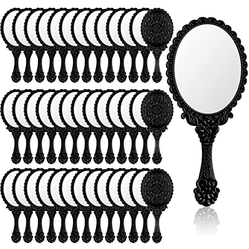 40 Pcs Vintage Handheld Mirror Retro Hand Held for Kids Cute Compact Girls Black
