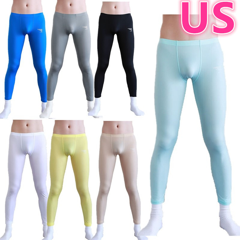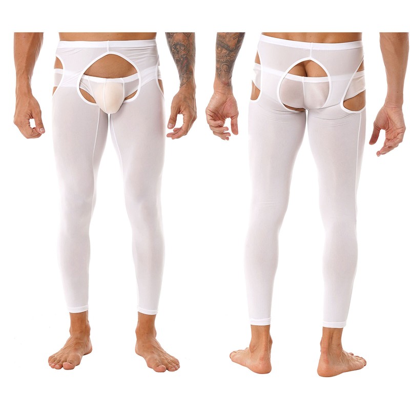 Mens Hollow Out Stretchy Leggings Mid Glossy Elastic Waistband Skinny Pants Underwear Nightwear.