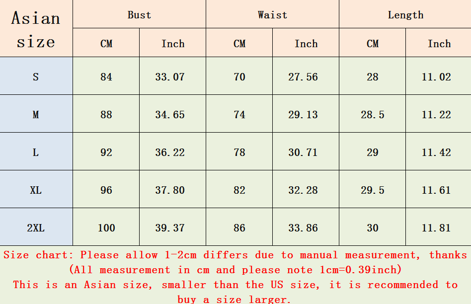 Please allow 1-2cm(1cm=0.39inch 1inch=2.54cm) differs due to manual measurement. Please take the item as the standard,thanks.