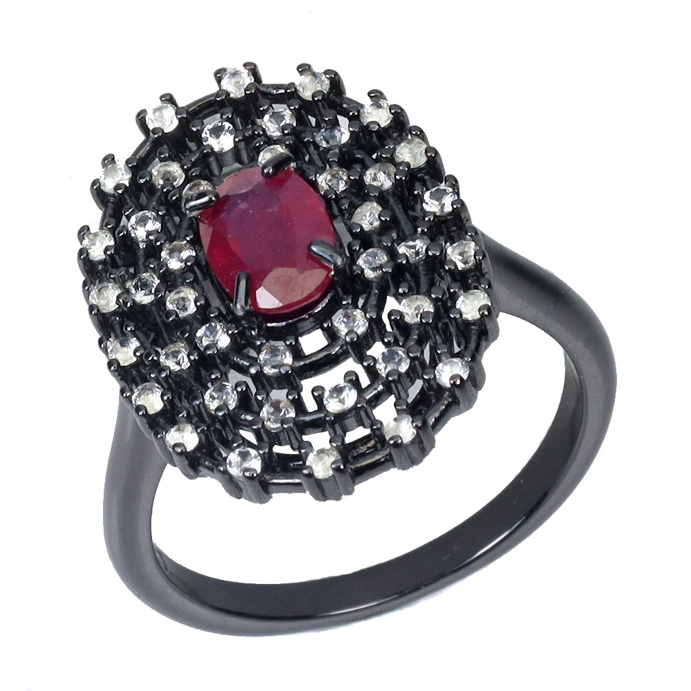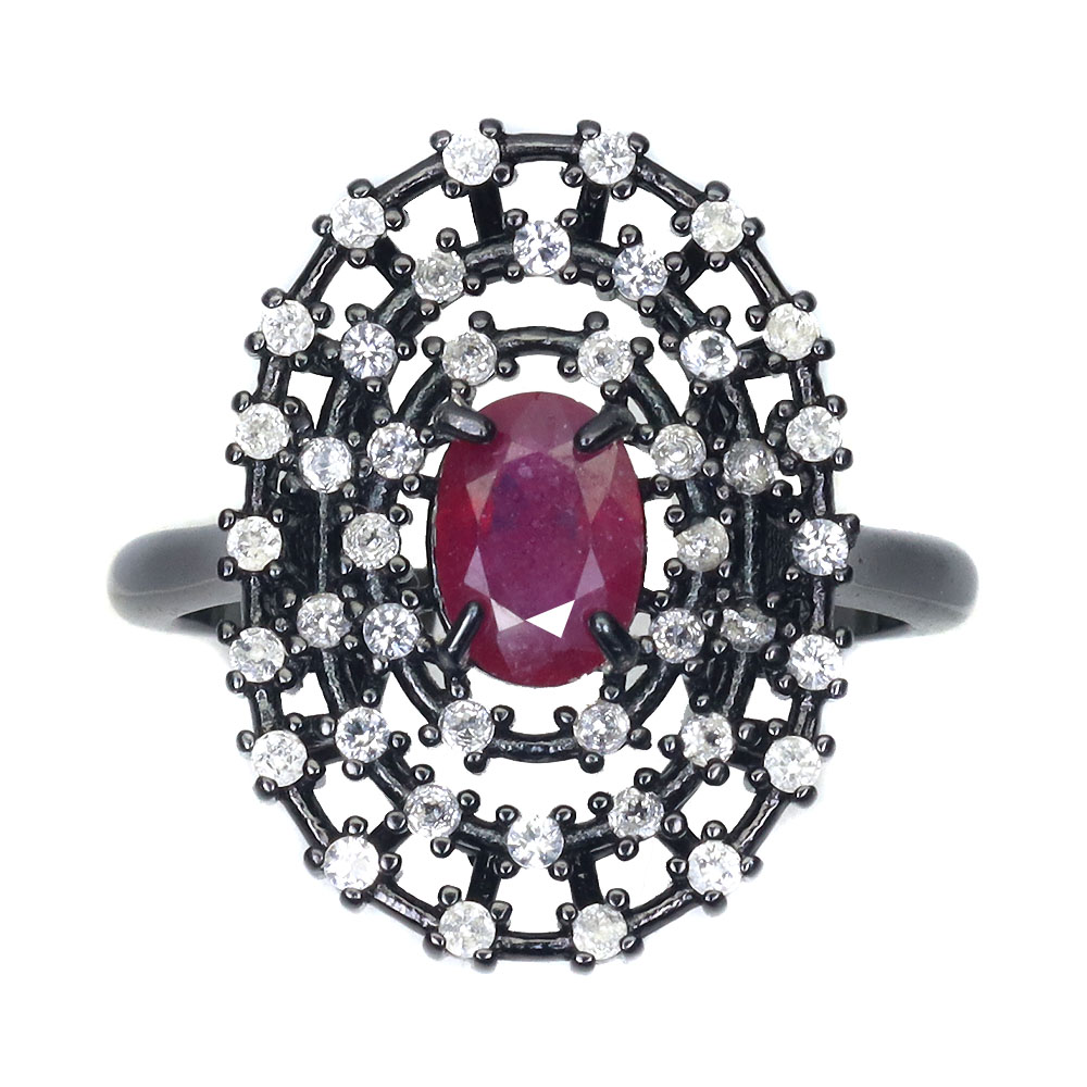 Heated Oval Ruby 7x5mm Topaz Black Rhodium Plate 925 Sterling Silver Ring 8