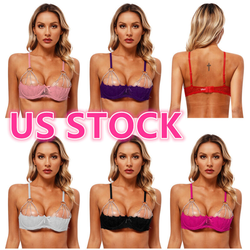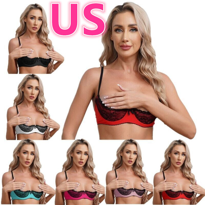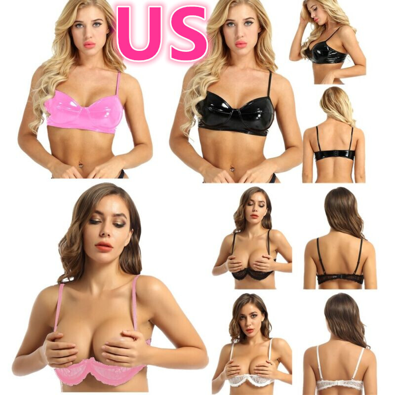 US Women's Lace Lingerie Set Push Up Cupless Bra Top with Thong Briefs Underwear