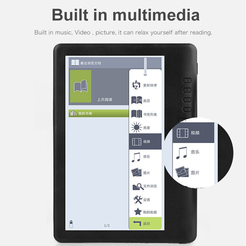 BK7019 7in TFT Electronic Paper Book Reader Portable Screen Audio Video AU
