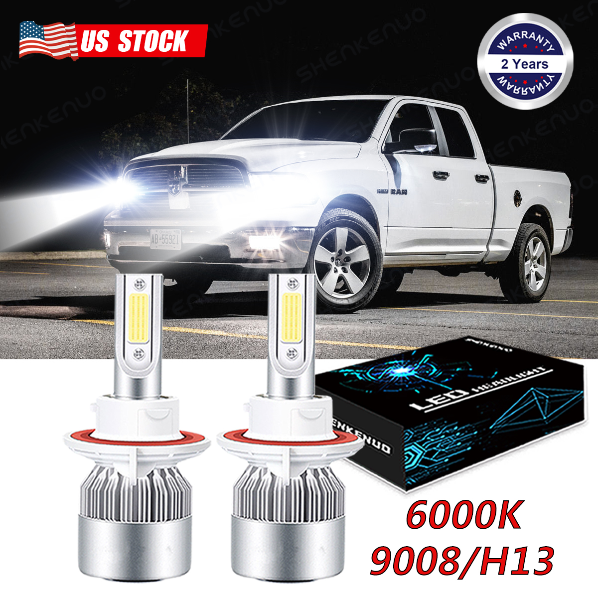 2x H13 High Power LED HeadLights Bulbs