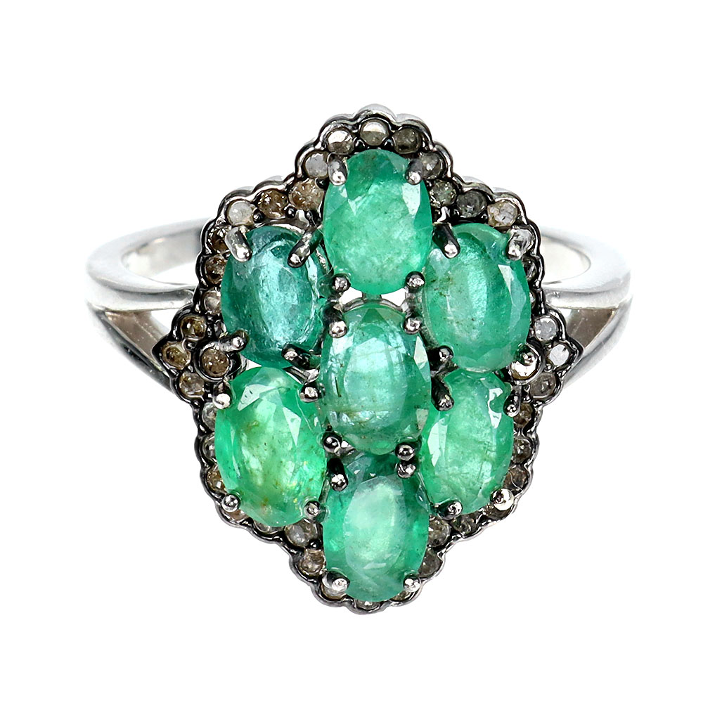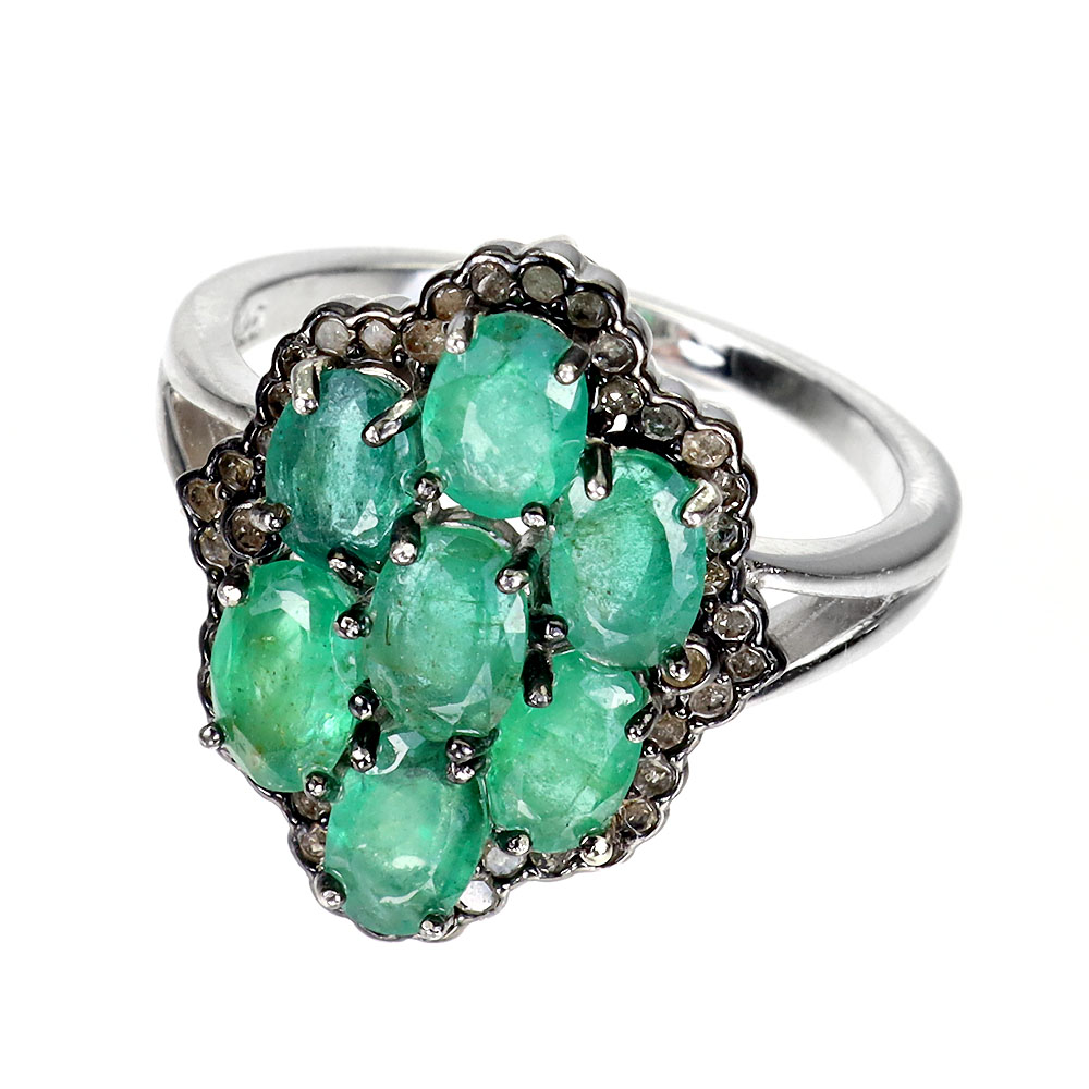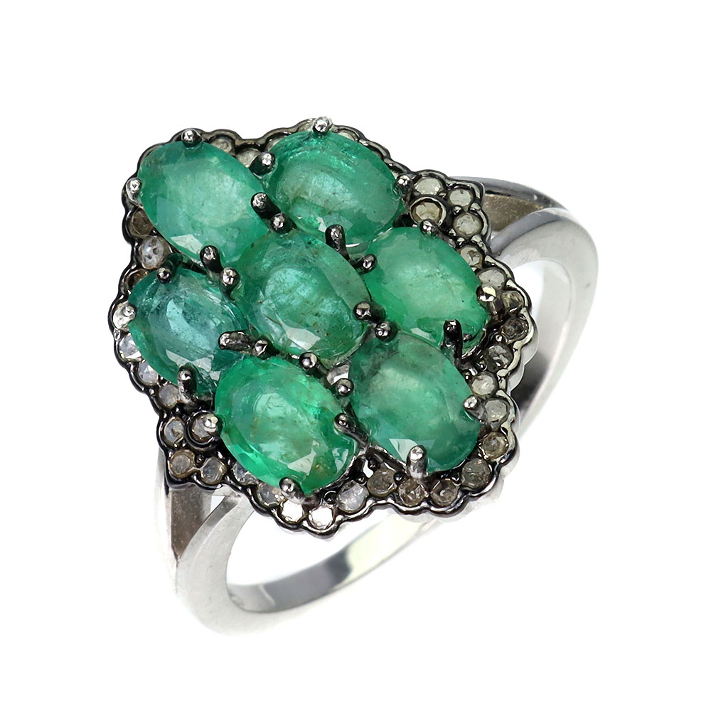 Unheated Oval Green Emerald 6x4mm Diamond 925 Sterling Silver Ring Size 9