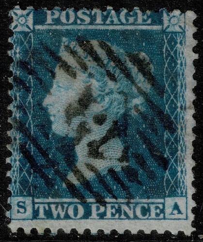 A very fine used 1855 2d Blue SG34 from Plate 5 lettered SA. Cat. £70.00