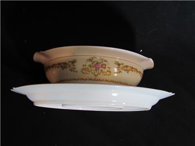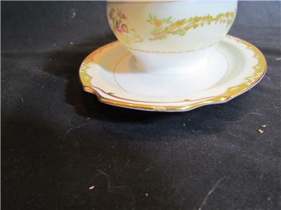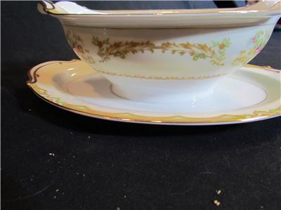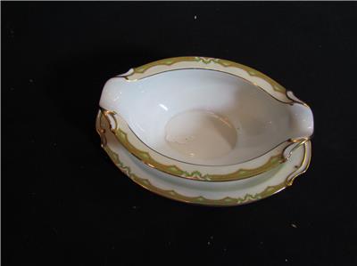 Vintage Noritake Japan Mystery (?) Gravy Boat W/ Attached Plate Floral Green Gold Rim