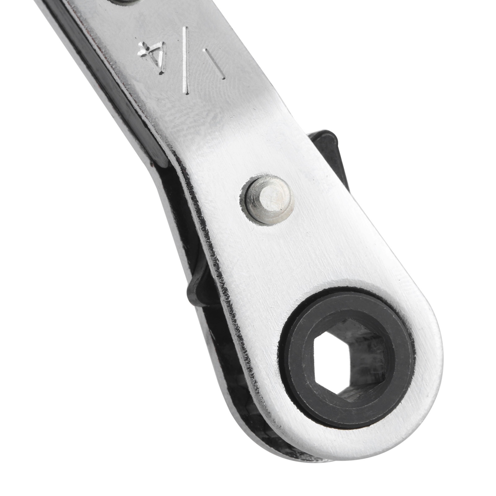 1, Air conditioning wrench with 4 different sizes: 3/16" 1/4" 5/16" and 3/8". Quick-flip reversing lever for quick reverse ratcheting action. Sockets are clearly marked with hex sizes. Package list: 2 x Ratchet Wrench